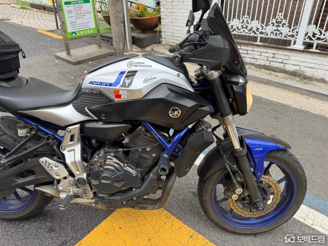 야마하 MT07 ABS모델 2016년 판매합니다 가장중요한 서류3장 전부 다있으며 폐지 완료했습니다 실 48.328KM 적산거리 입니다