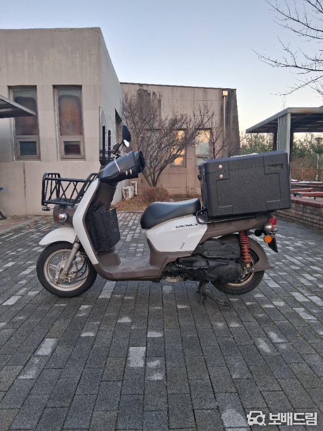 블랙박스 와 충전기 탑 박스 장착 돼 있습니다 .바퀴 구동계새로 교체 했구요 상태 양호하고 레져용 배달용 다 가능합니다 여성분이 타기에도