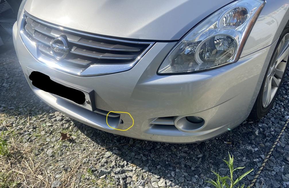 그런데 이후 차량을 확인해보니, 앞범퍼에 500원 동전 크기 정도의 구멍이 생겨 있었습니다.