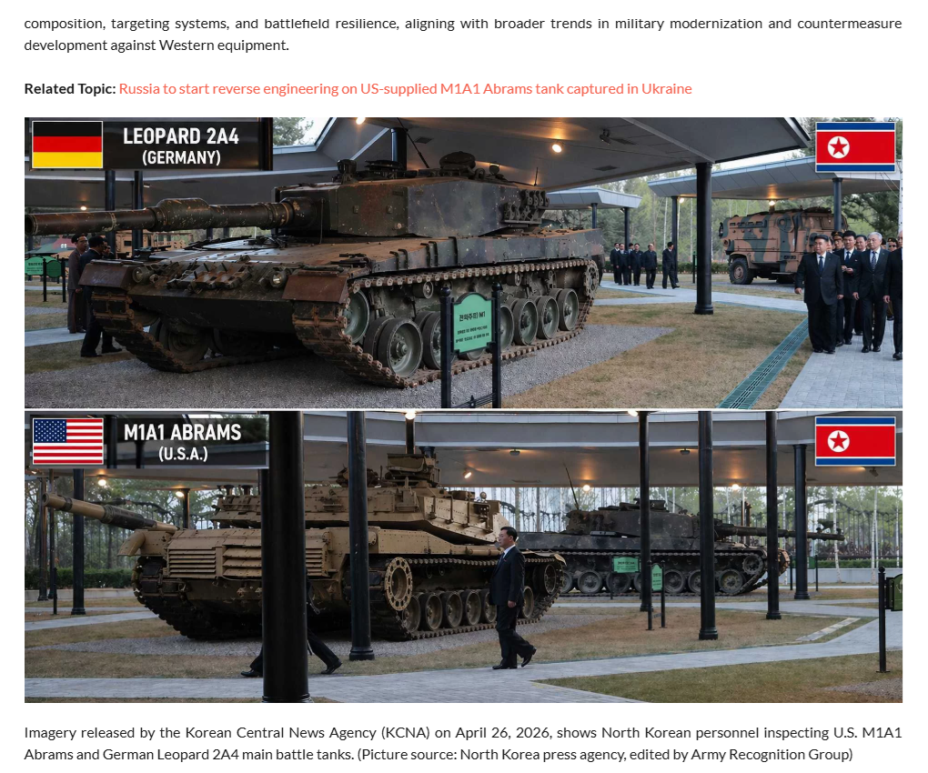 북한에 건네진 모양입니다. M1A1, 레오2A4, 브레들리장갑차 등등...