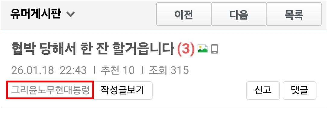 다계정 주작하다보면 흔히 벌어지는 일 (11) 이미지 26.01.19 02:33 추천 97 조회 5998 Sunkyoo 작성글보기 신고 댓글 그리윤노무현으로 답글 달아야 하는데 실수로 잊혀진노무현으로 달음썼으면 마는 거지 뭘 또 새삼스럽게 댓삭하냐너 다중인격 쑈 모르는 사람 누가 있다고...* 일부 스샷 hisanova님 꺼 퍼 옴 추천 97 본 게시물을 뉴스 및 기타 매체에서 인용하실 때는 '보배드림' 출처 표기를 부탁드립니다 페북 트윗 밴드 카톡 카스 복사 스크랩 삭제 수정 신고 불법광고신고 목록