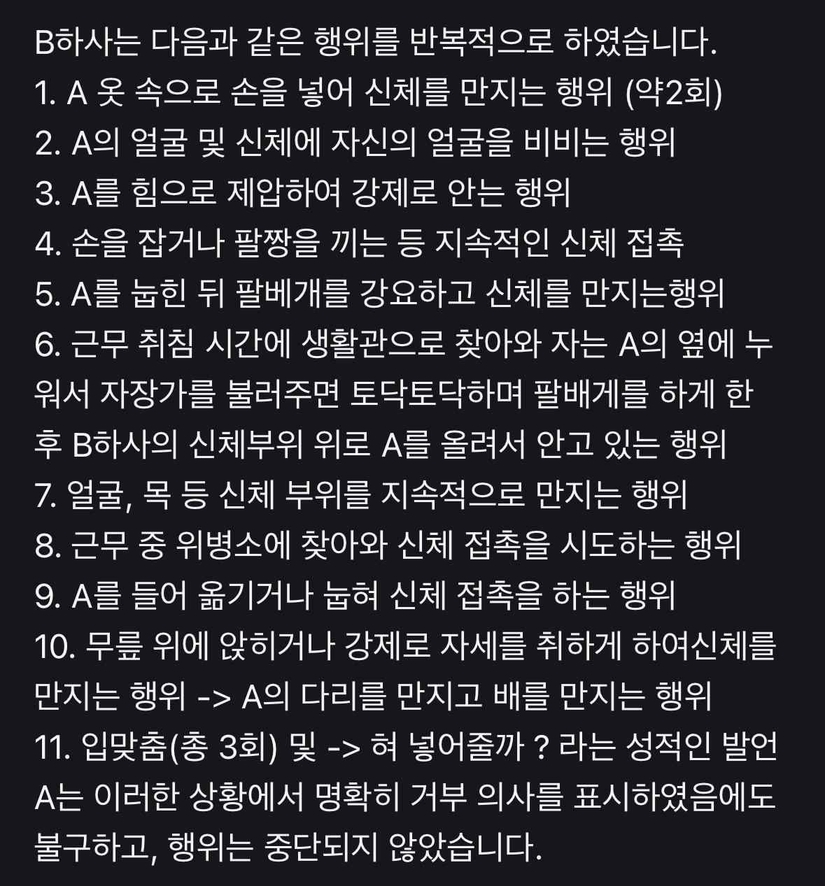 군대 남자 성폭행,, 아직도 있나,,얘기 좀 들어줘,, (3) 이미지 26.04.16 15:26 추천 97 조회 887 갸옹갸옹 작성글보기 신고 댓글 몇개월가 있었던 일입니다.. 대대 안에서 사건을 덮으려고 난리입니다. 피해자를 위해 국민동의청원에 동의 한표씩 부탁드립니다. 5만명을 채워야해요.. 아래 사이트에서 사연 읽어보시고 동의한표 부탁드립니다!!https://petitions.assembly.go.kr/proceed/onGoingAll/4D49EB3FCBC86D83E064ECE7A7064E8B 추천 97 본 게시물을 뉴스 및 기타 매체에서 인용하실 때는 '보배드림' 출처 표기를 부탁드립니다 페북 트윗 밴드 카톡 카스 복사 스크랩 삭제 수정 신고 불법광고신고 목록