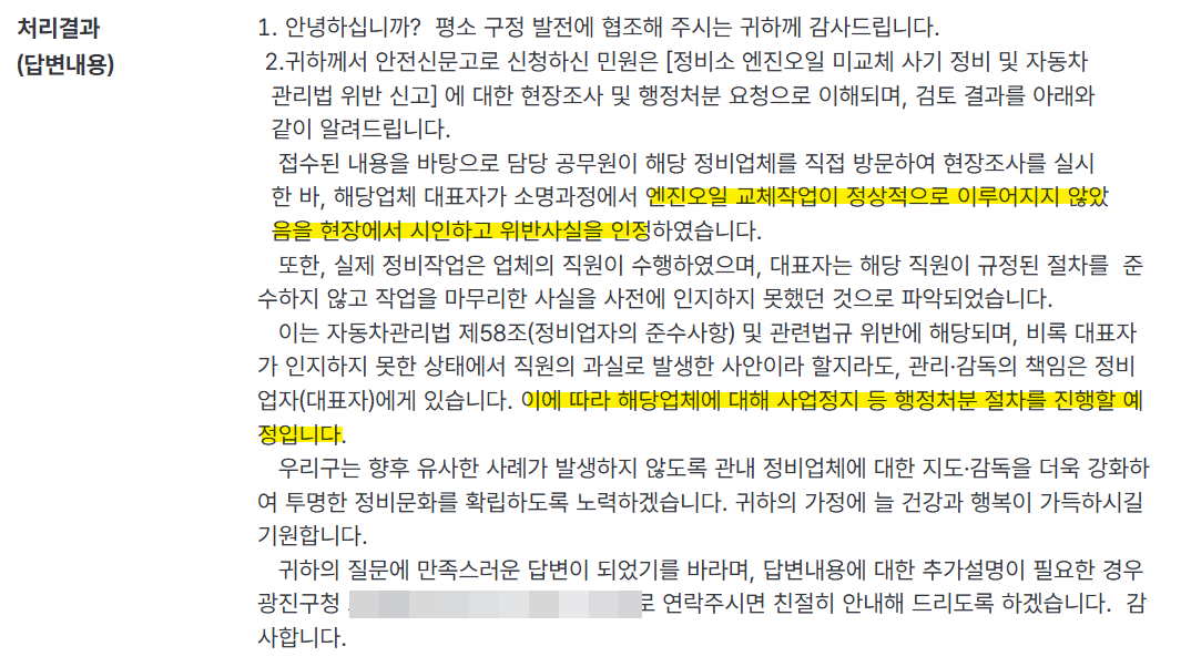 이 사건으로 인해 선량하게 정직하게 일하시는 분들과 또 소비자분들께서 같은 피해를 보지 않으셨으면 했고 혹여나 나쁜 마음으로 물을 흐리시는 정비업계 분들께는 나름 경종을 울리는 사건이 되지 않을까 했습니다.