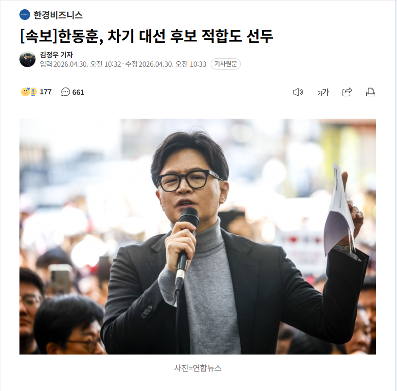 한동훈이가 차기 대통령 후보 적합도1위 랍니다.