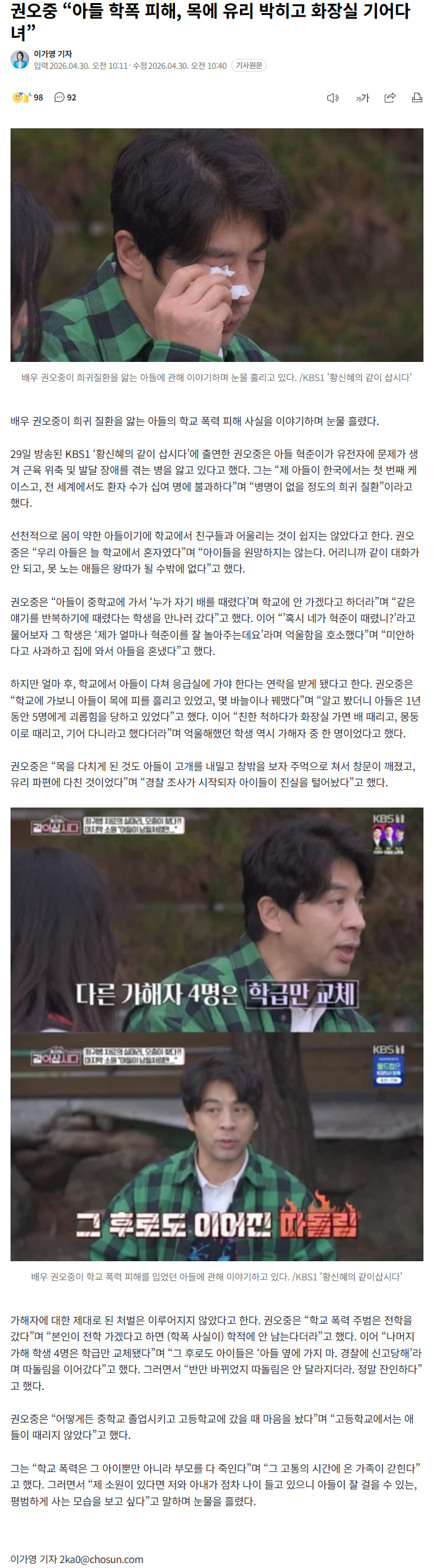권오중 “아들 학폭 피해, 목에 유리 박히고 화장실 (7) 이미지 26.04.30 12:14 추천 52 조회 5215 진햅 작성글보기 신고 댓글 https://n.news.naver.com/article/023/0003973940?ntype=RANKING 추천 52 본 게시물을 뉴스 및 기타 매체에서 인용하실 때는 '보배드림' 출처 표기를 부탁드립니다 페북 트윗 밴드 카톡 카스 복사 스크랩 삭제 수정 신고 불법광고신고 목록