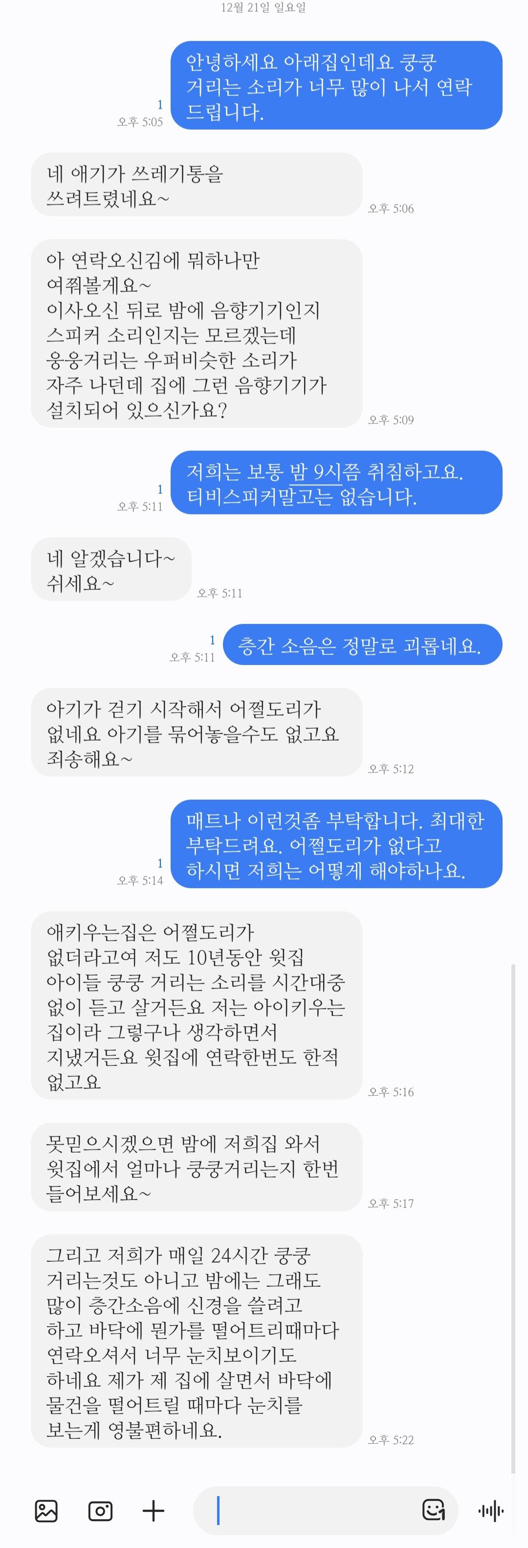 어떻게 해결을 해야 할지 또는 윗집 분하고 대화가 될지좀 해석좀 부탁합니다.