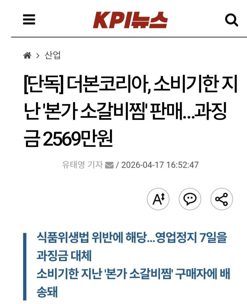 더본코리아, 소비기한 지난 본가 소갈비찜 판매로