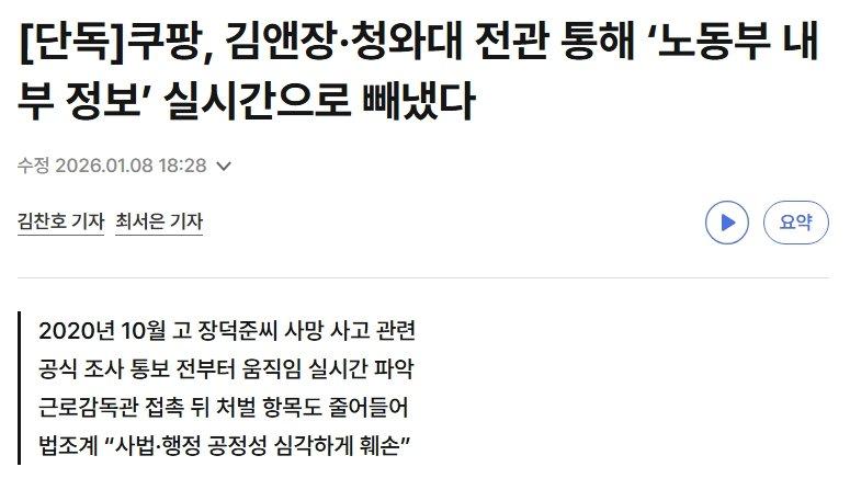 1. 쿠팡이 고용노동부 근로감독 과정에서 김앤장과 전직 청와대 출신 임원 등 ‘대관 라인’을 통해 내부 정보를 사전에 입수·검증한 정황이 내부 e메일로 드러났다.
