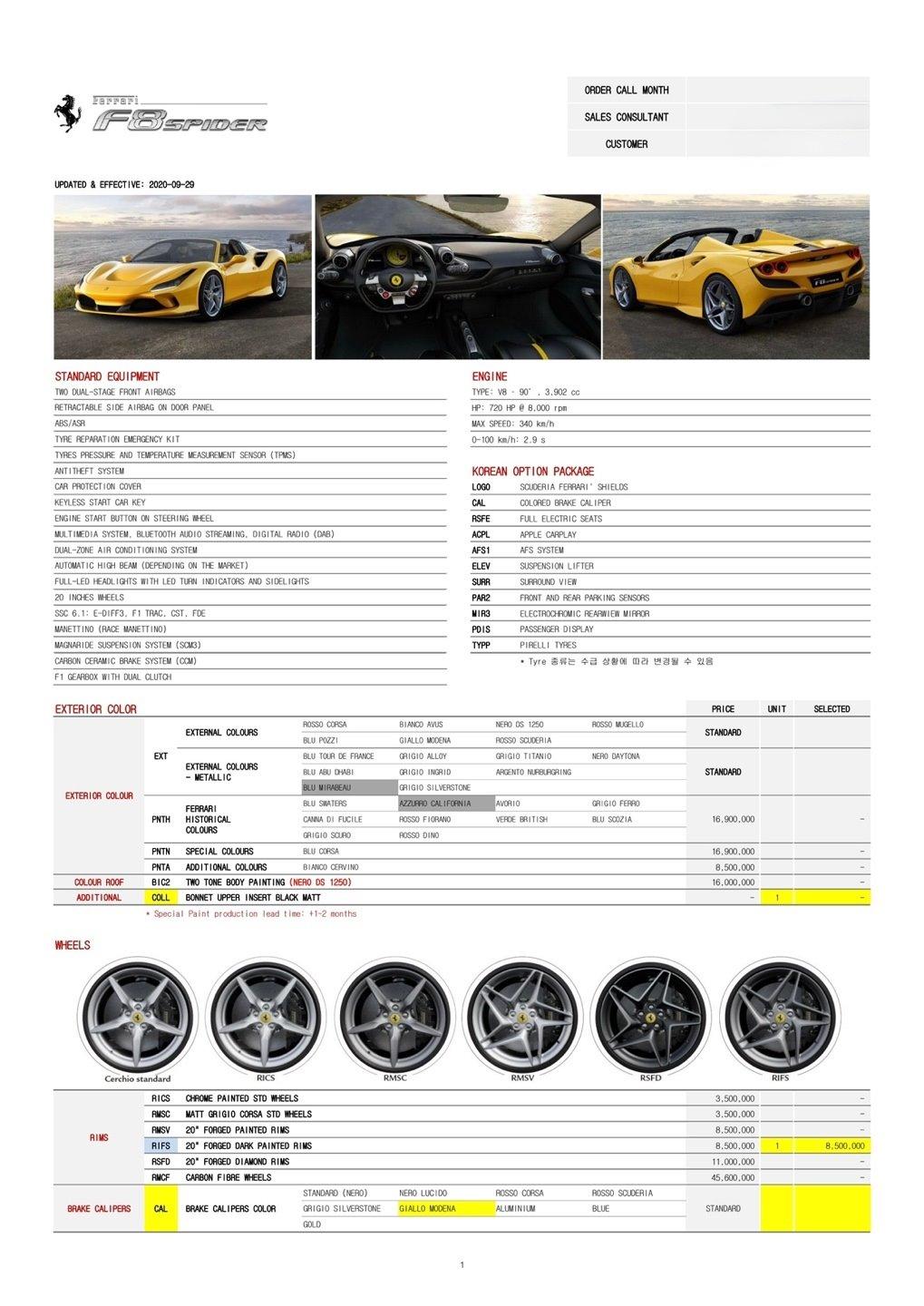 차량정보 페라리 F8 스파이더 3.9 V8