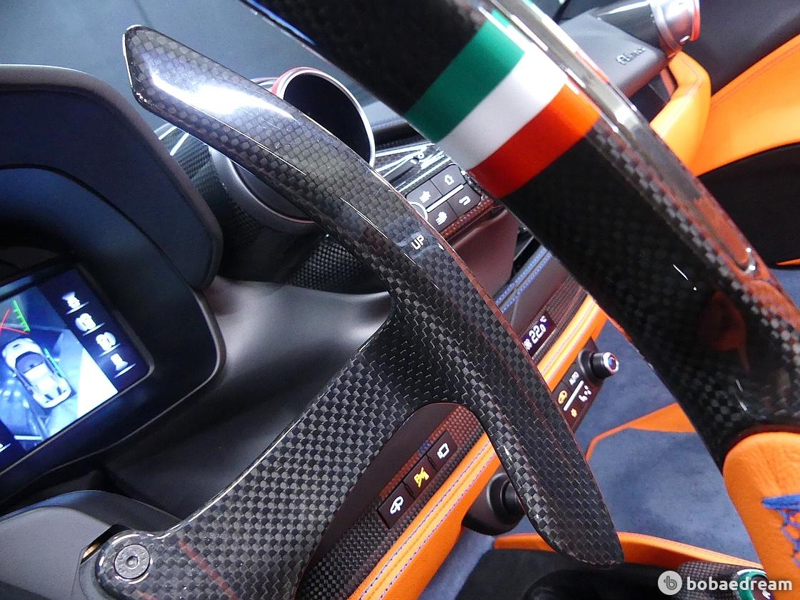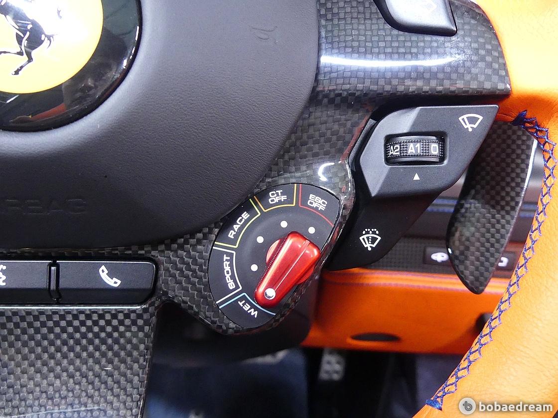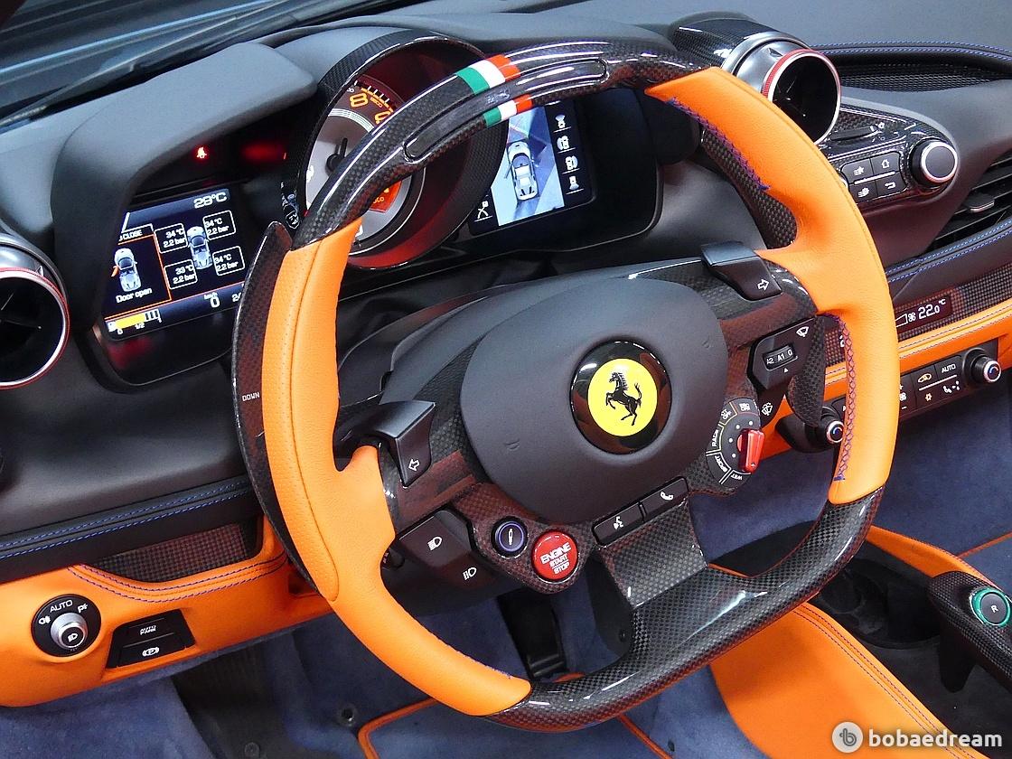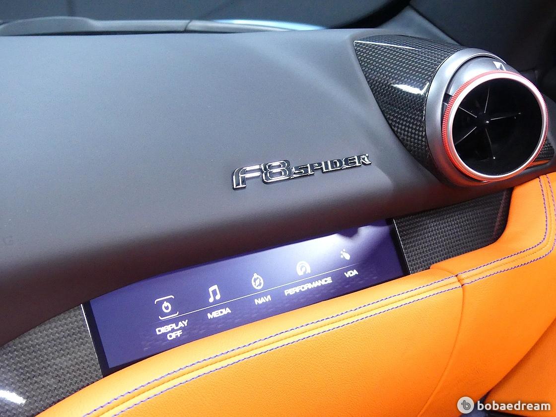 F8 스파이더는 F1 경주차처럼 모든 컨트롤 기능이 신형 스티어링 휠에 탑재된다. 가벼워진 차량을 부각하기
