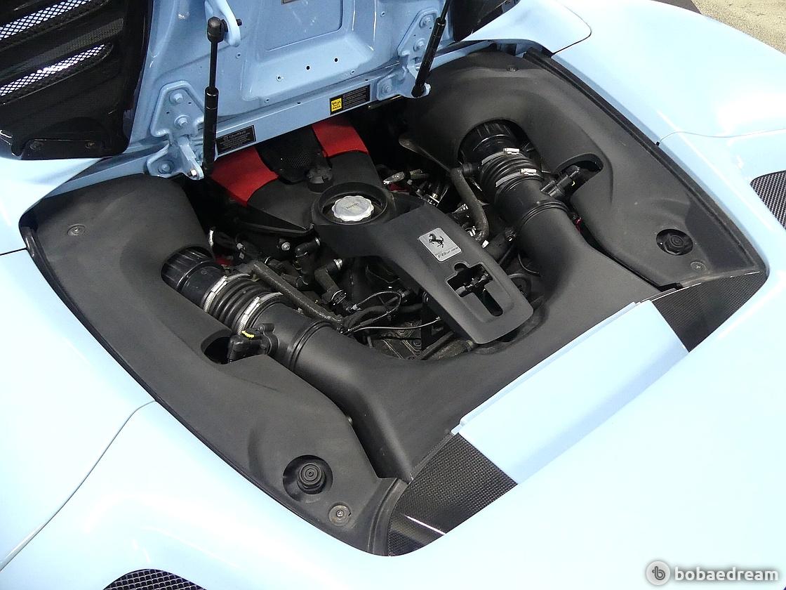 488 스파이더 대비 출력을 50마력 높이기 위해 트랙 전용 모델인 488 챌린지(488 Challenge)에서 차용한