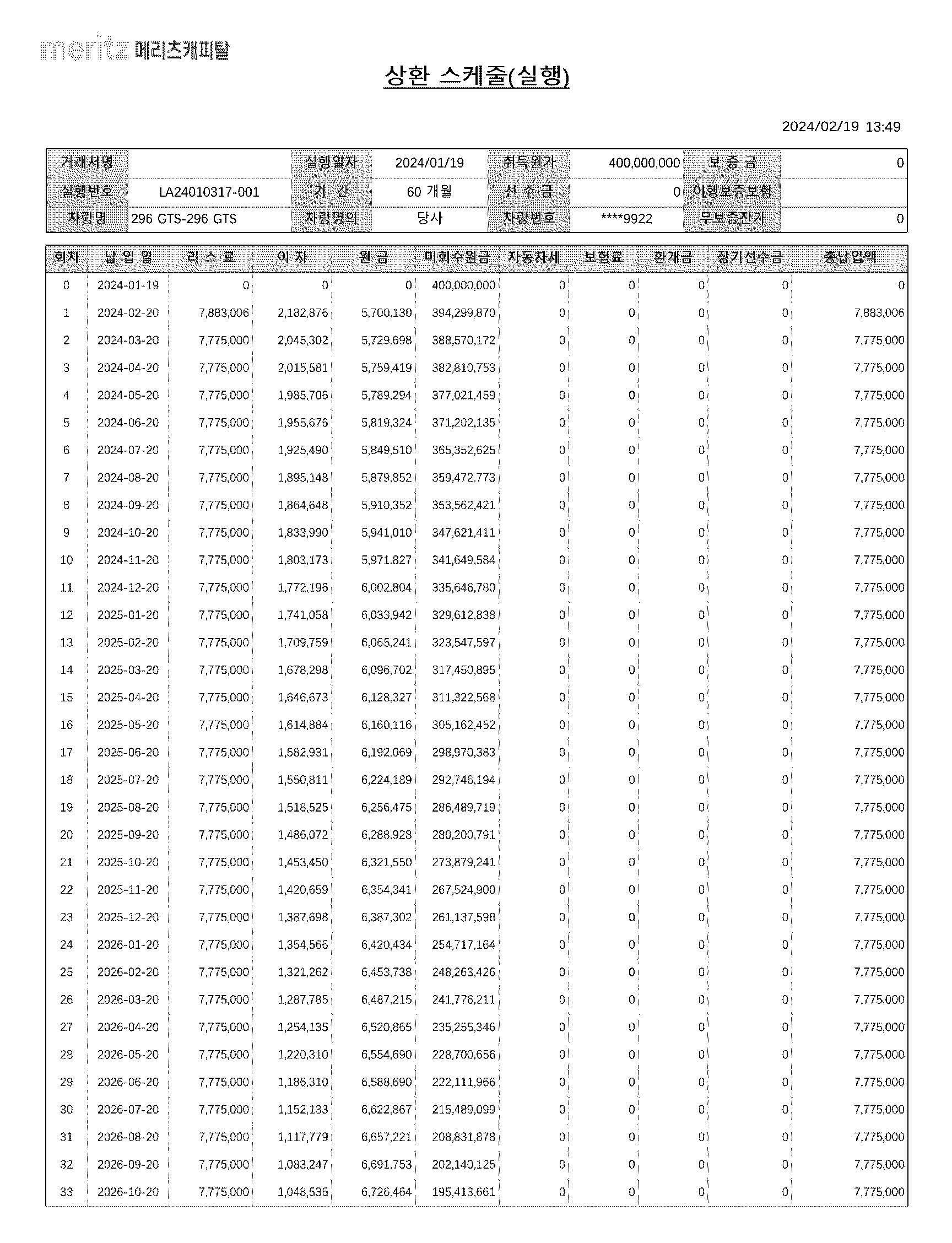▶리스 스케줄표
