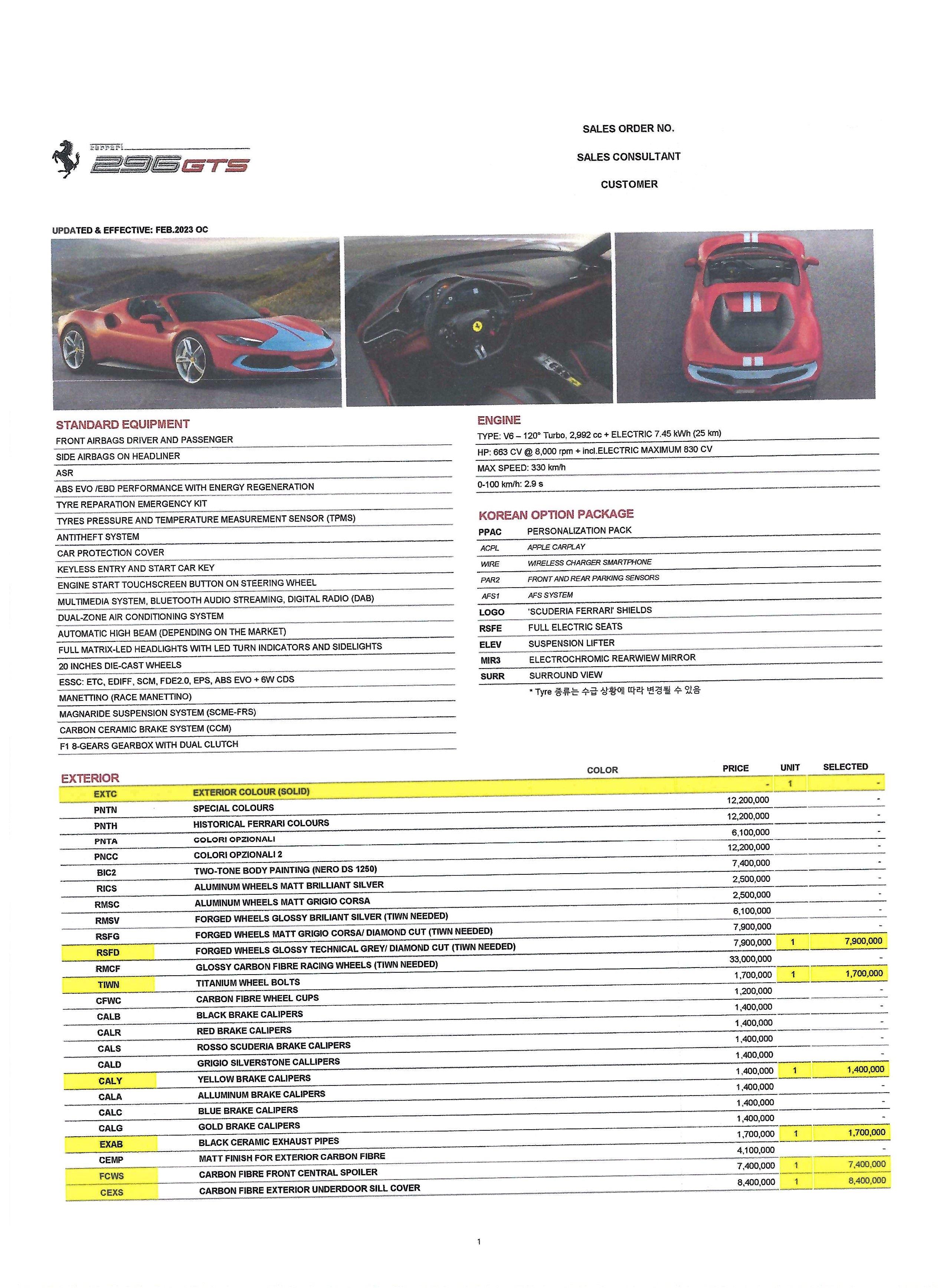 ▶ 페라리 296 GTS 3.0 PHEV 견적 리스트