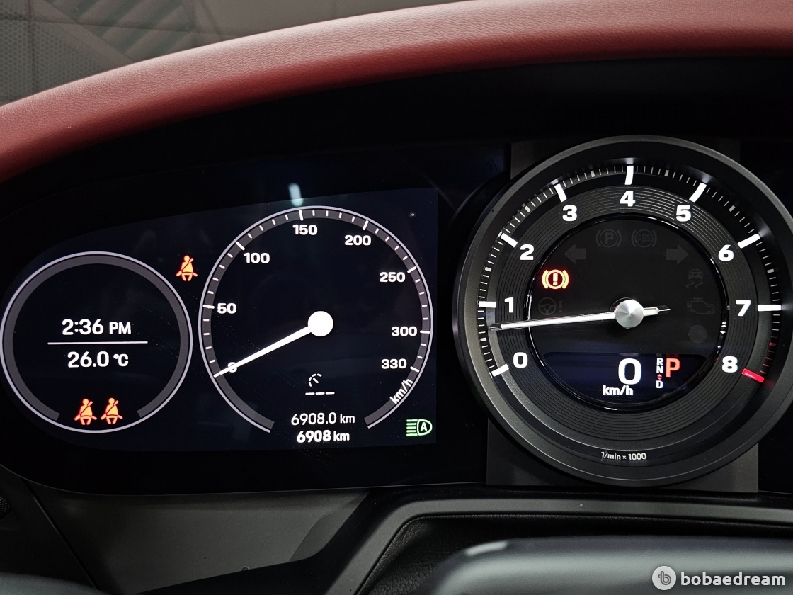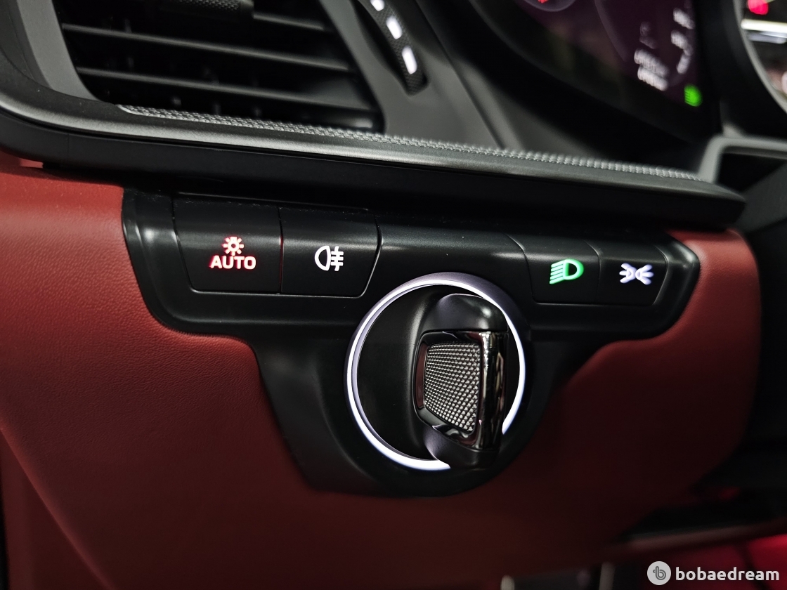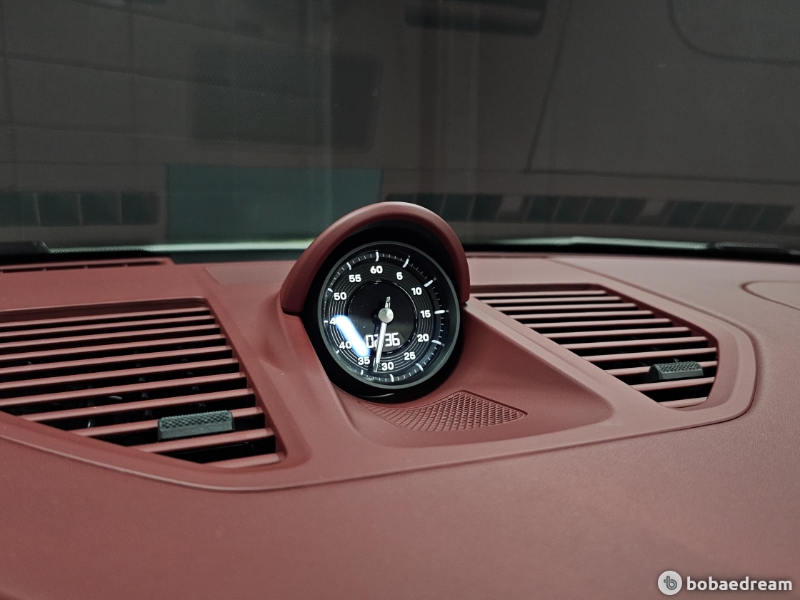 특징이다. 포르쉐 전형의 센트럴 타코미터는 두 개의 얇고 프레임이 없는