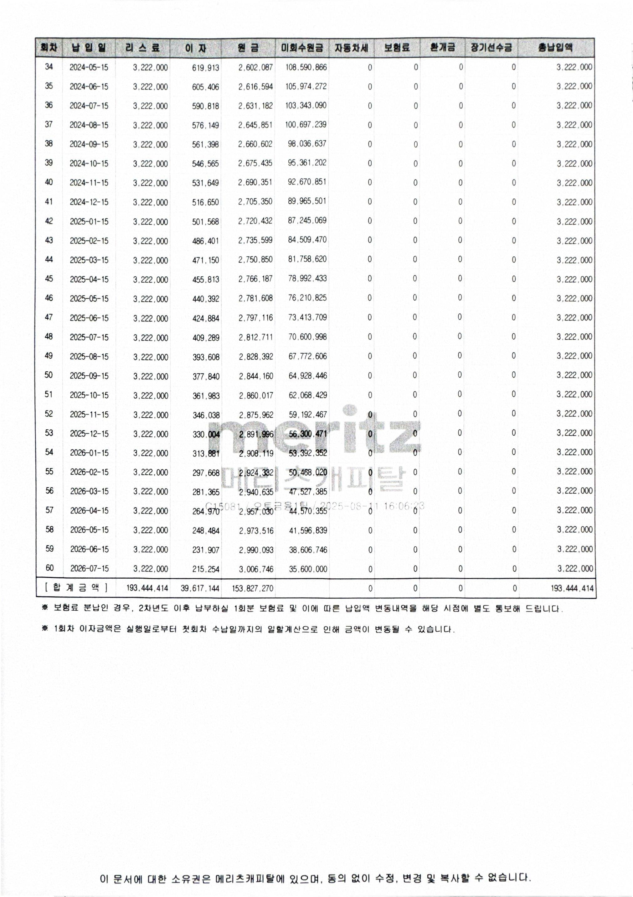 ▶리스 스케줄표