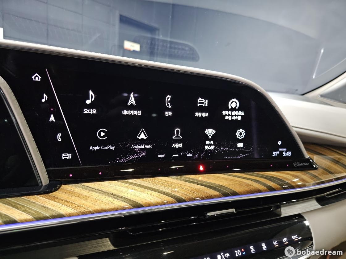 도어의 안쪽에는 원목 소재가 광범위하게 사용됐다. 캐딜락은 센터페시아에서