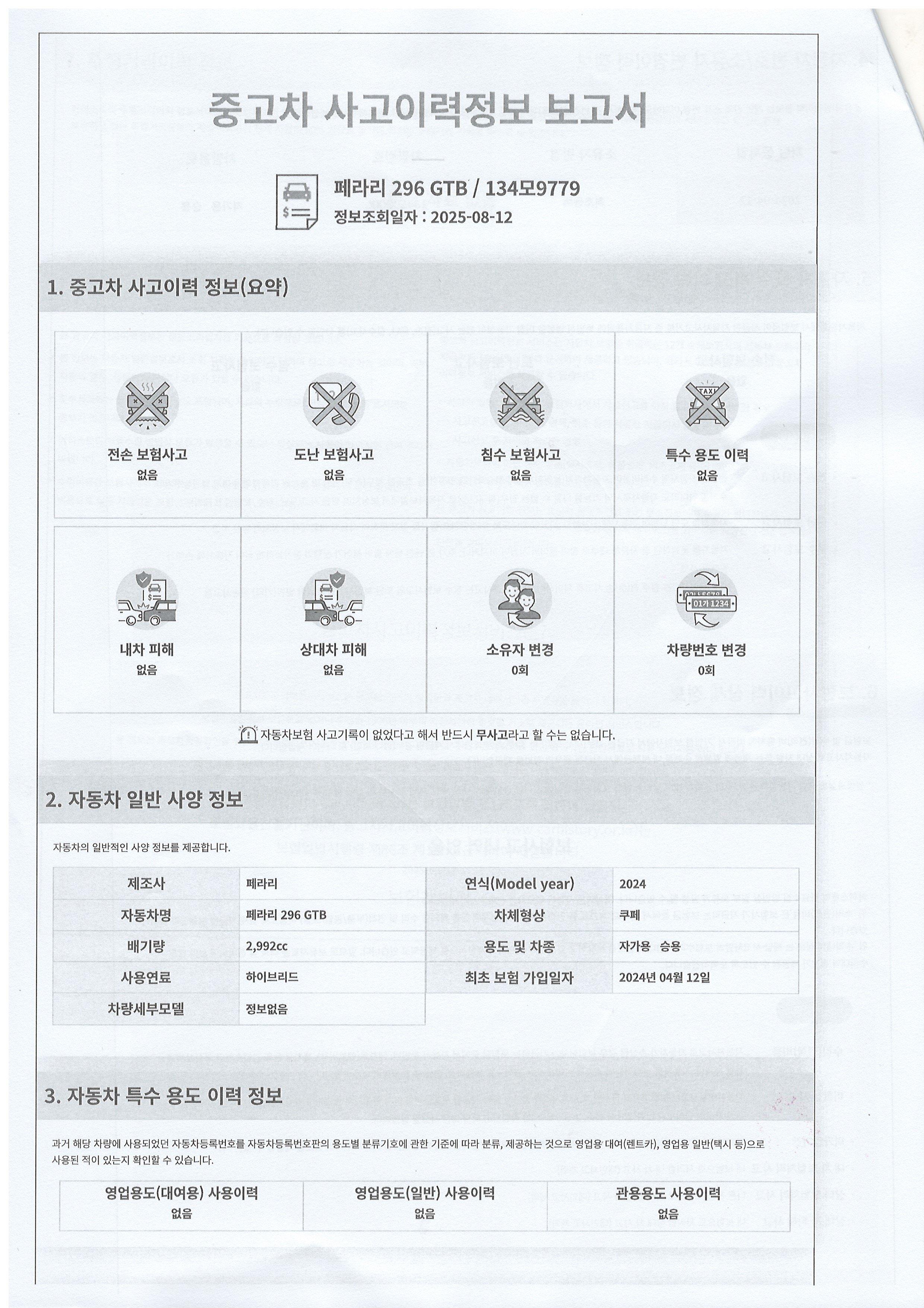 ▶사고이력정보 보고서