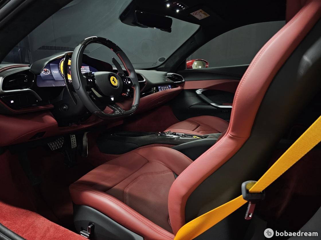 실내 인테리어는 SF90 스트라달레를 통해 선보인 풀 디지털 인터페이스를 토대로 디자인됐다. 인테리어