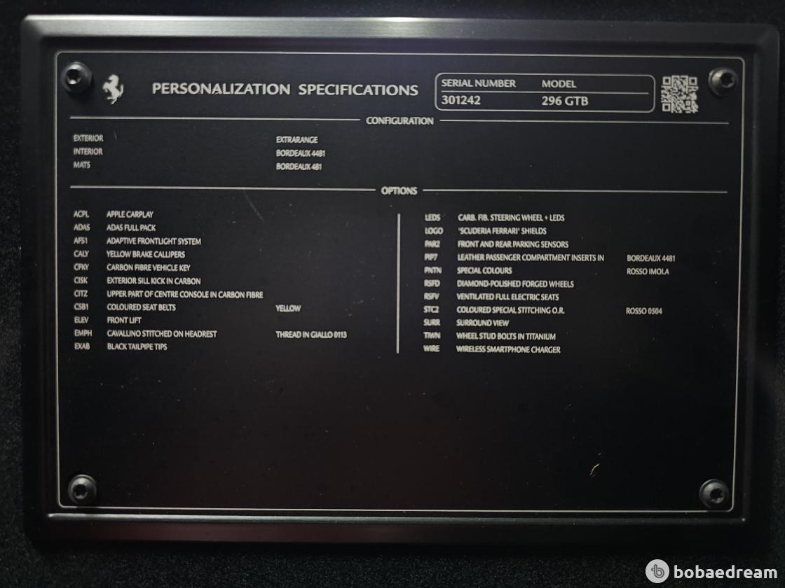 2024년 4월식 페라리 296 GTB 3.0 PHEV 모델을 판매합니다.