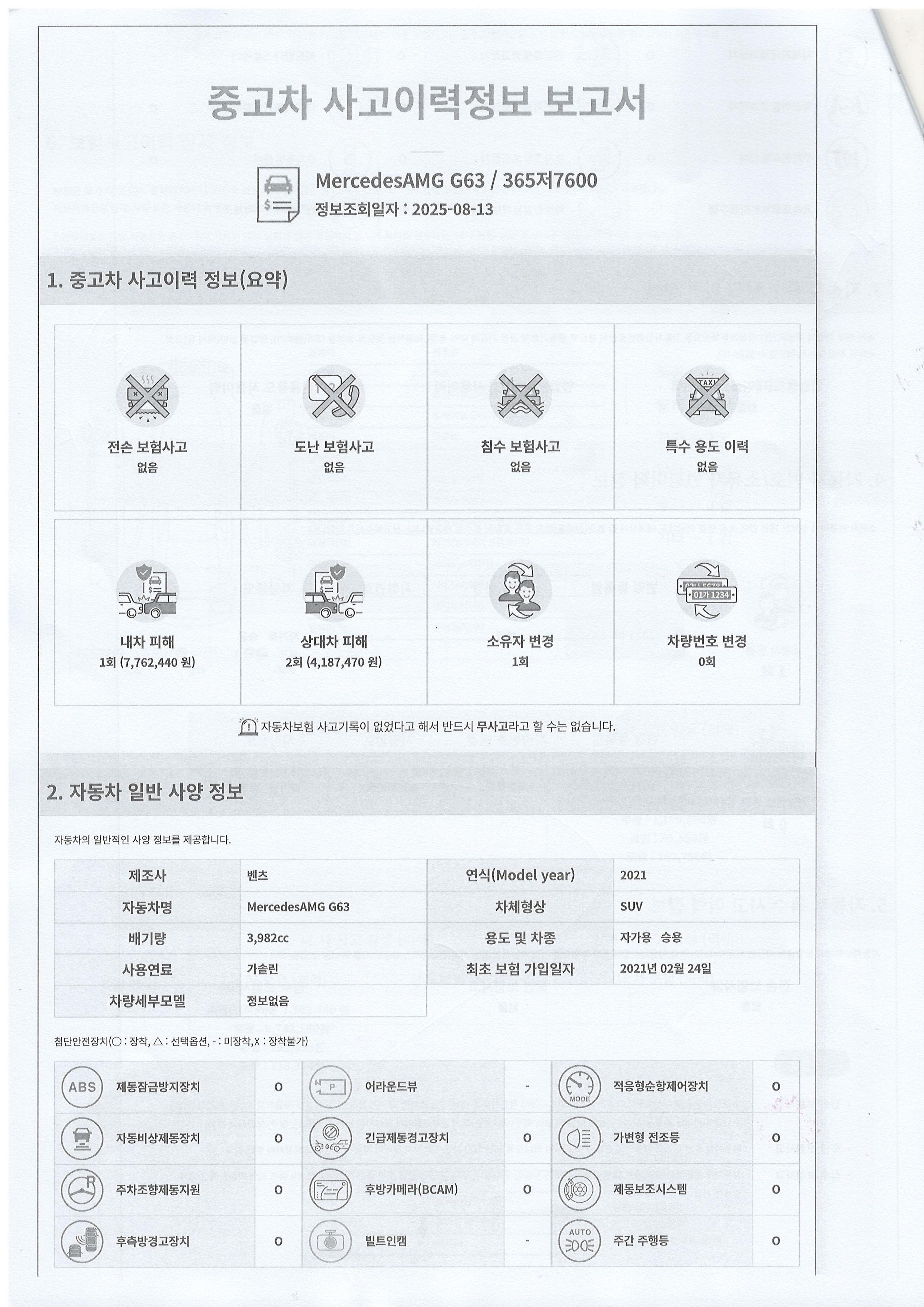 ▶사고이력정보 보고서