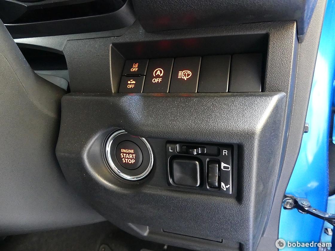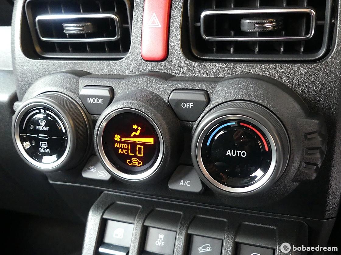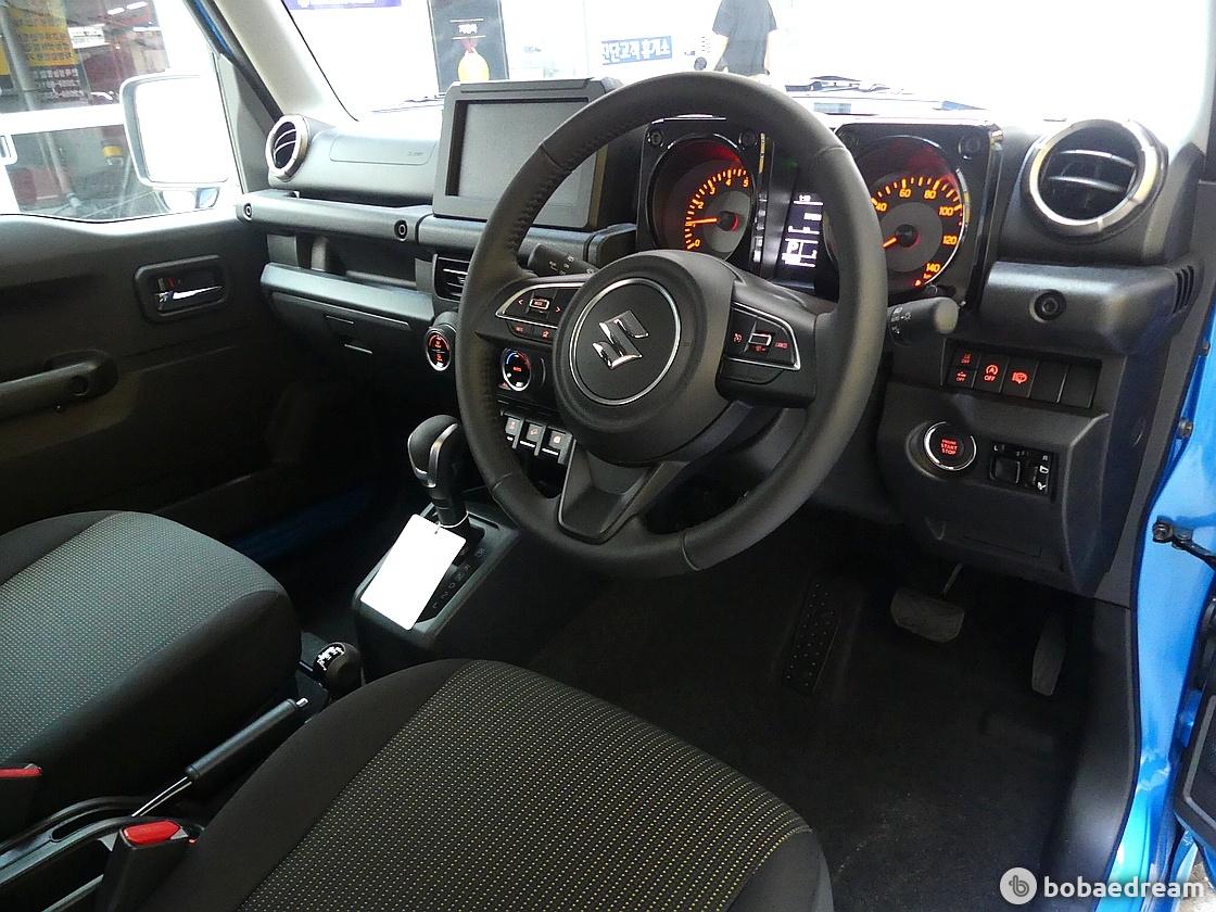 짐니의 실내 공간은 정통 SUV라 해도 과언이 아니다. 수직으로 세운 센터페시아와 차곡차곡 쌓은 각종