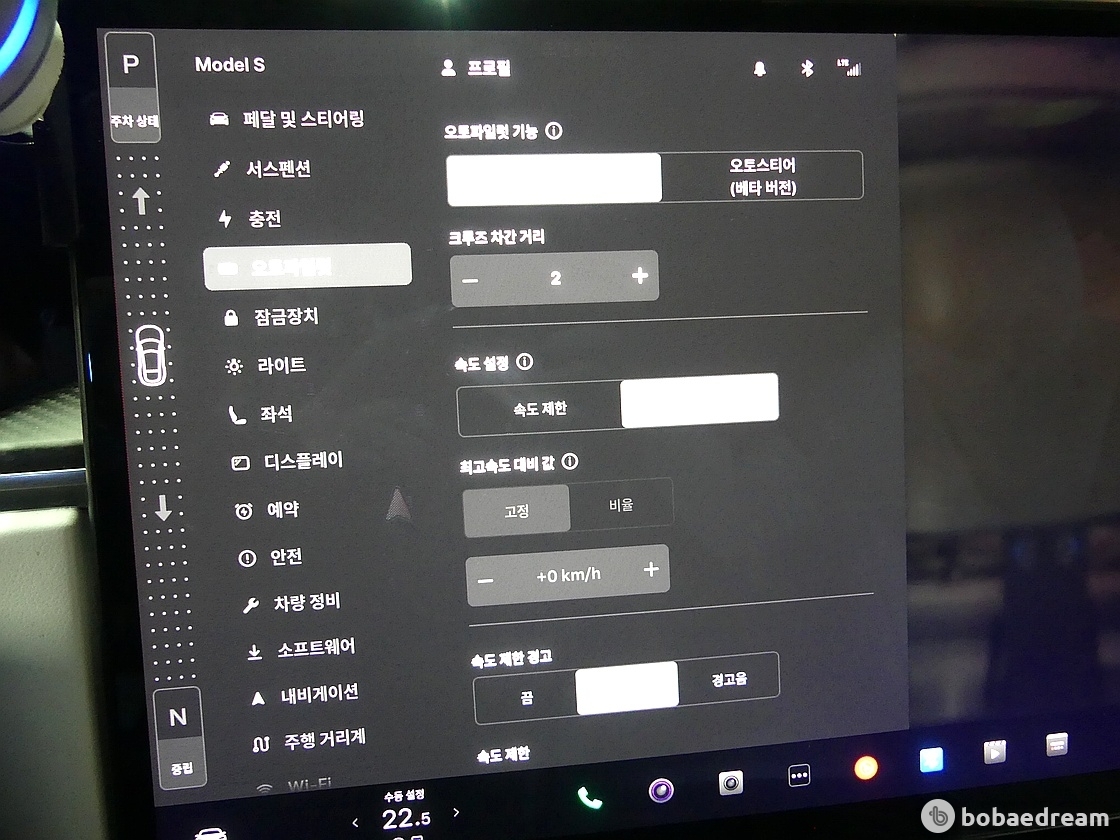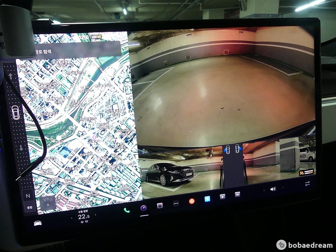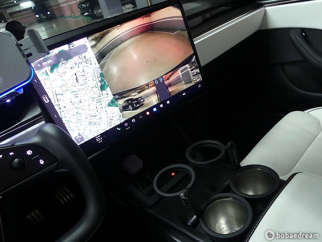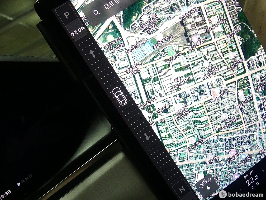 실내는 차 중앙에 위치한 17인치 터치스크린에 좌우 각도 기능을 추가했고, 가로 방향으로 변경해 내비게이션