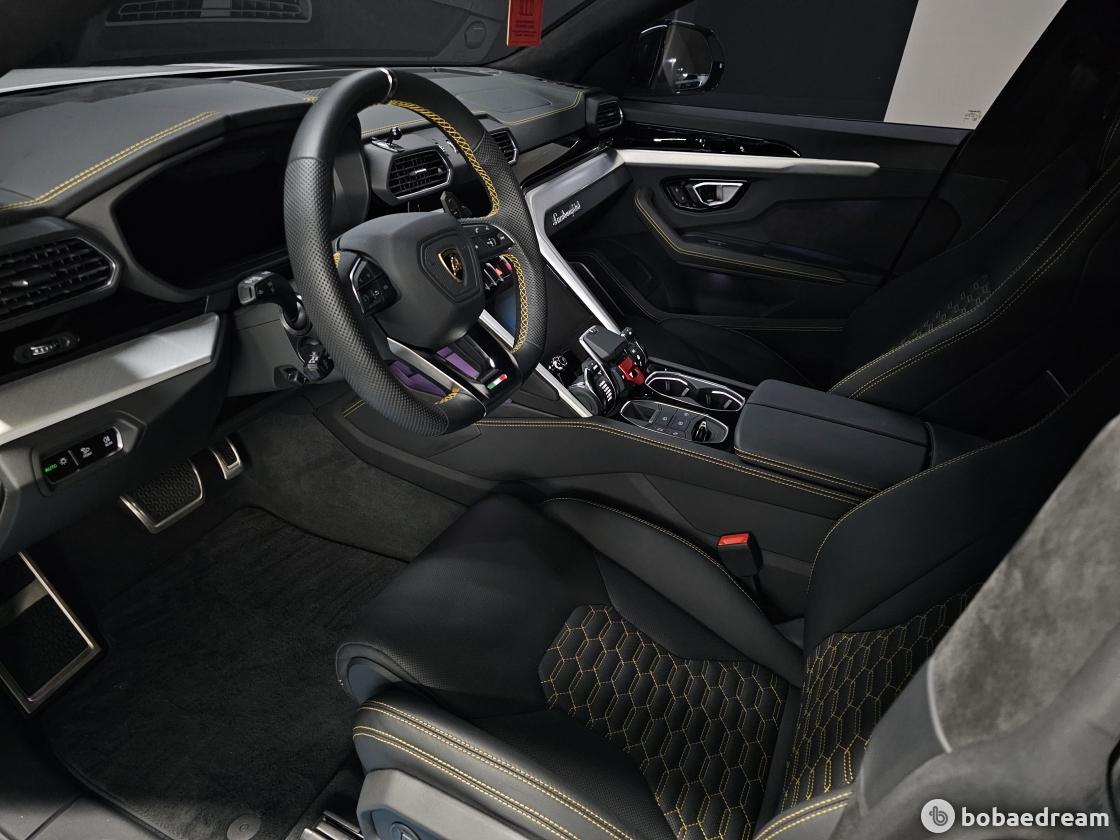 인테리어 디자인은 우루스 퍼포만테의 스티칭 패턴이 들어간 바이 컬러 스포르티보(Bi-color Sportivo)와 바이