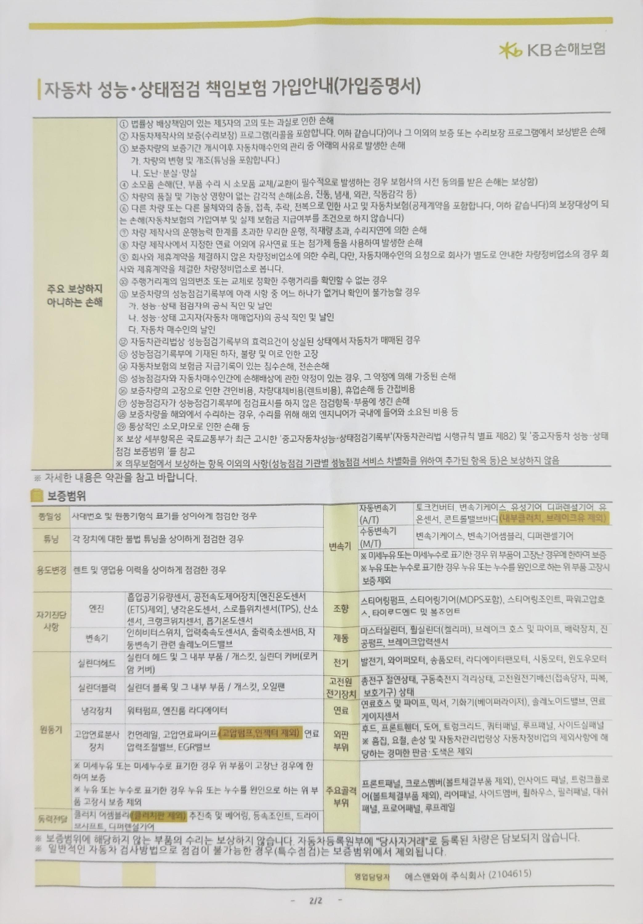 ▶자동차 성능, 상태점검 책임보험 가입증명서
