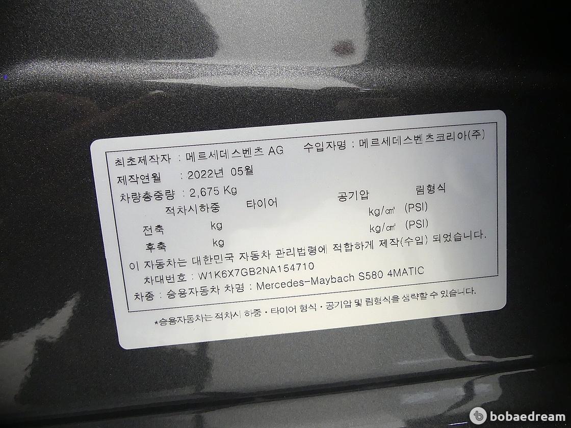 2022년 9월식 벤츠 마이바흐 S580 4매틱 메트로폴리탄 나이트워크 모델을 판매합니다.
