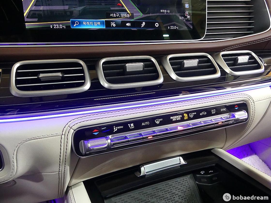 센터 콘솔의 기본 MBUX 후방 태블릿(MBUX Rear Tablet)이나 뒷좌석 사이의 팔걸이를 통해 뒷좌석에서도