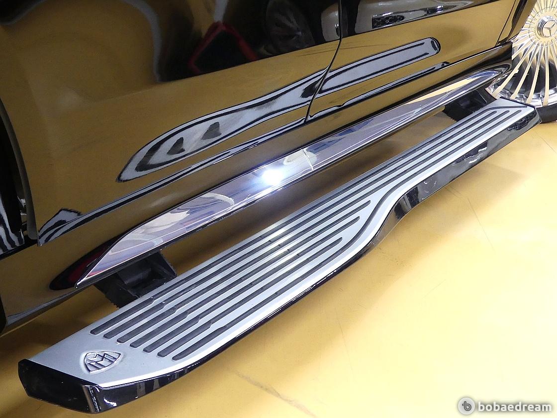 그릴의 촘촘한 세로형 크롬 스트럿(chrome struts), D 필러를 비롯해 차량 외관 곳곳에 위치한 마이바흐 브랜드