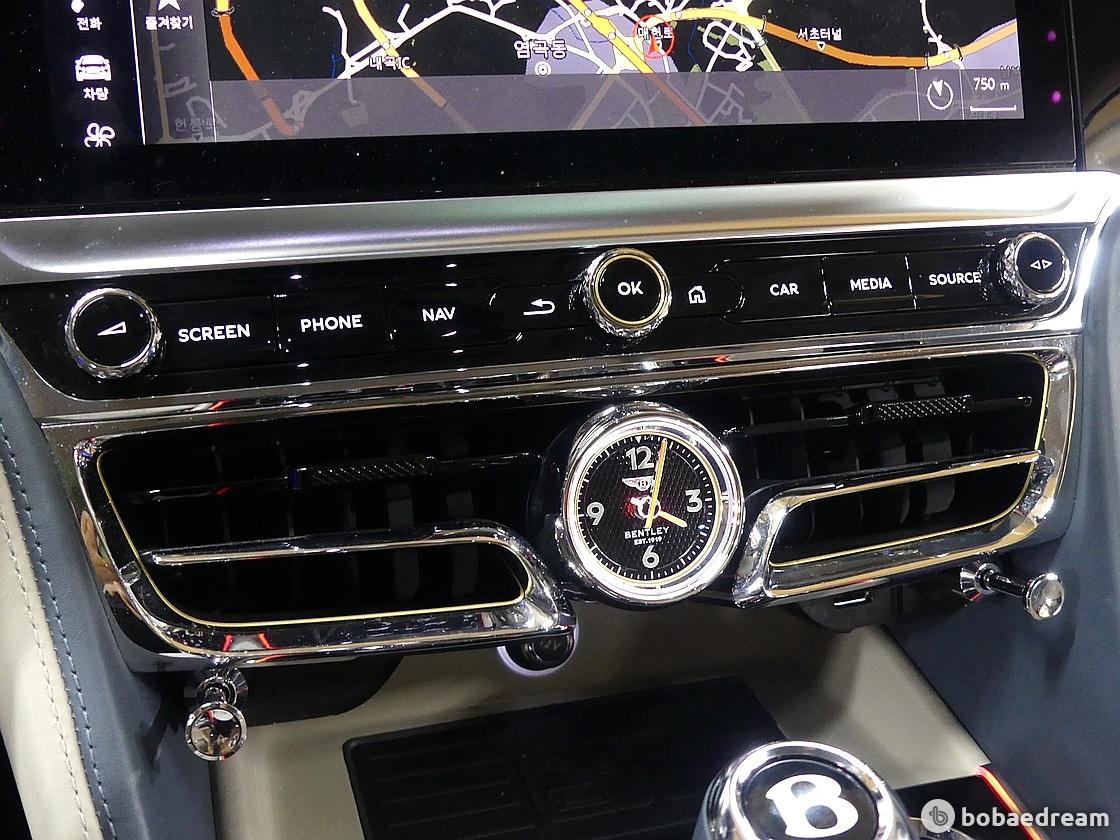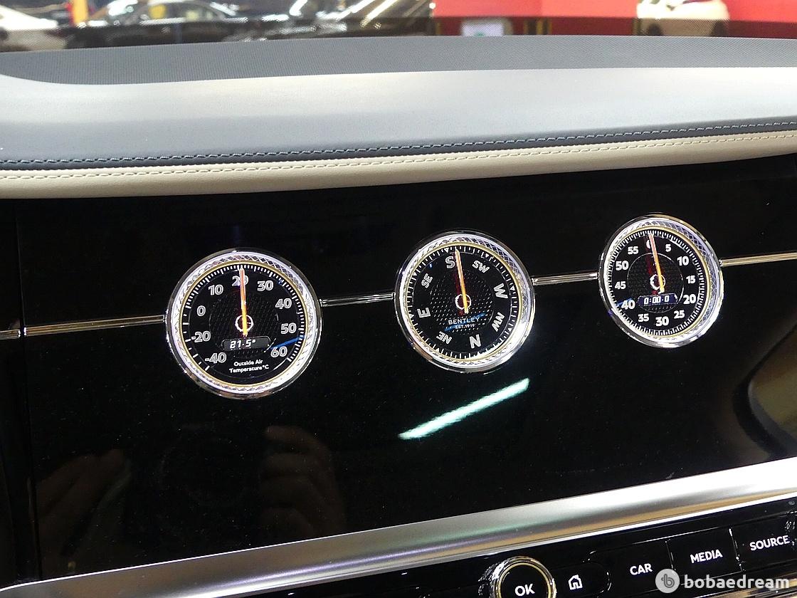 벤틀리모터스가 세계 최초로 선보였으며 베니어, 12.3인치 터치스크린과 아날로그 시계를 모두 갖추고