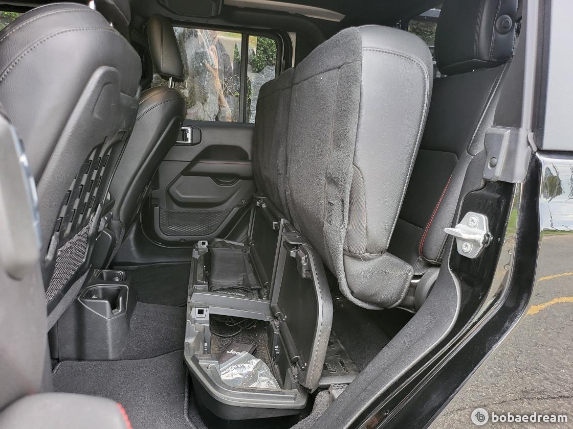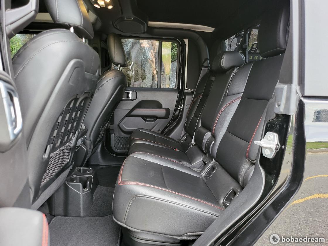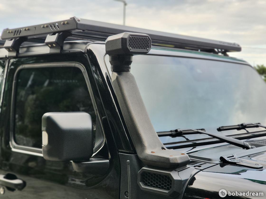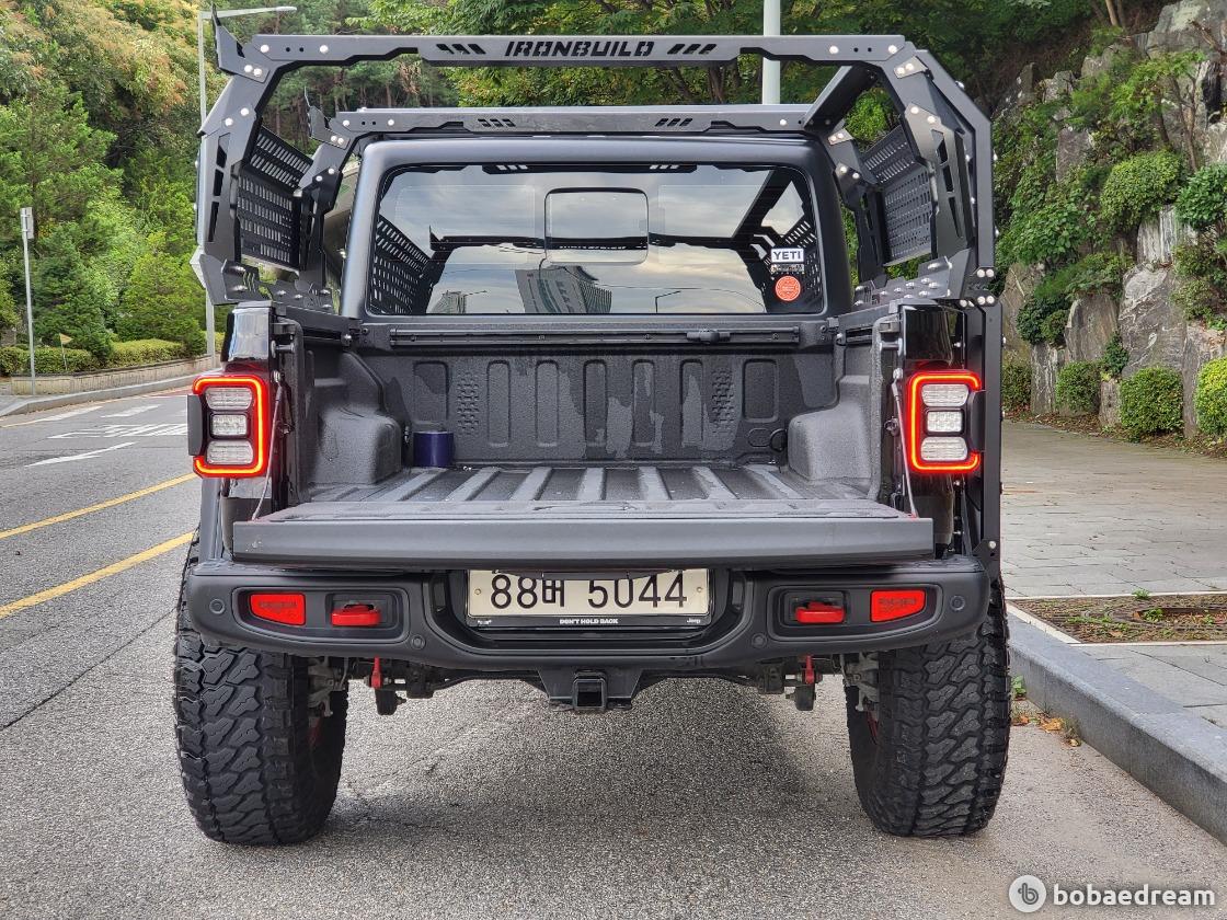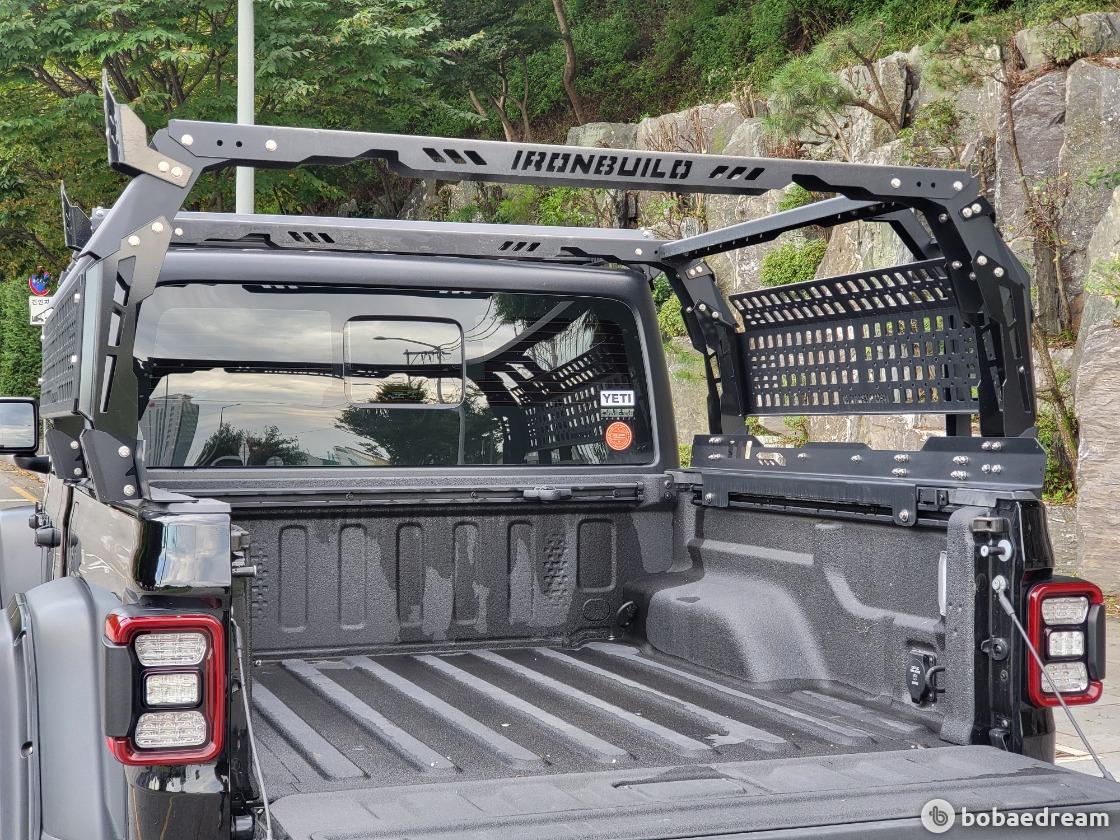 기존 랭글러 4도어 모델 대비 대폭 늘어난 전장과 휠베이스를 통해 여유로운 데크 공간을 마련한 것이 주된