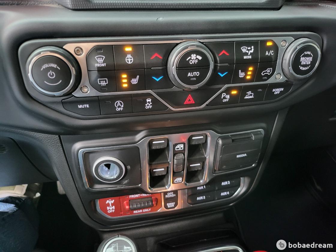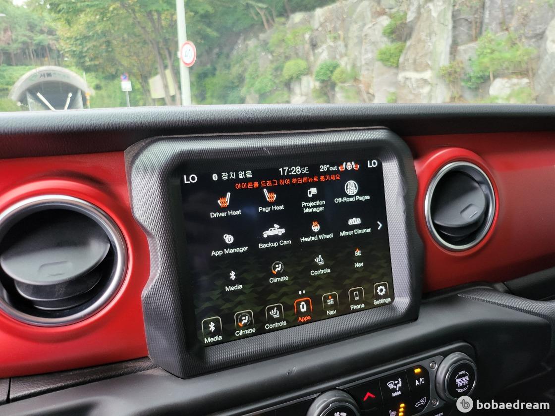 특징이며 실내 공간 및 주요 패키지 부분에 있어서 랭글러와 완전히 동일한 구성을 갖춘 것을 볼 수 있다.