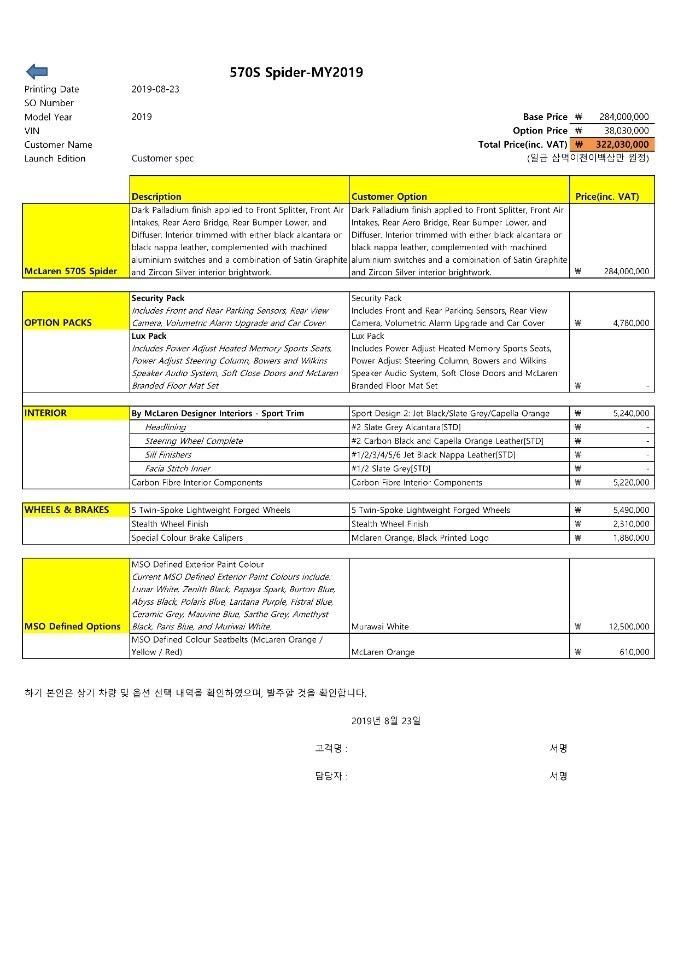 2019년 8월식 맥라렌 570S 스파이더 모델을 판매합니다.