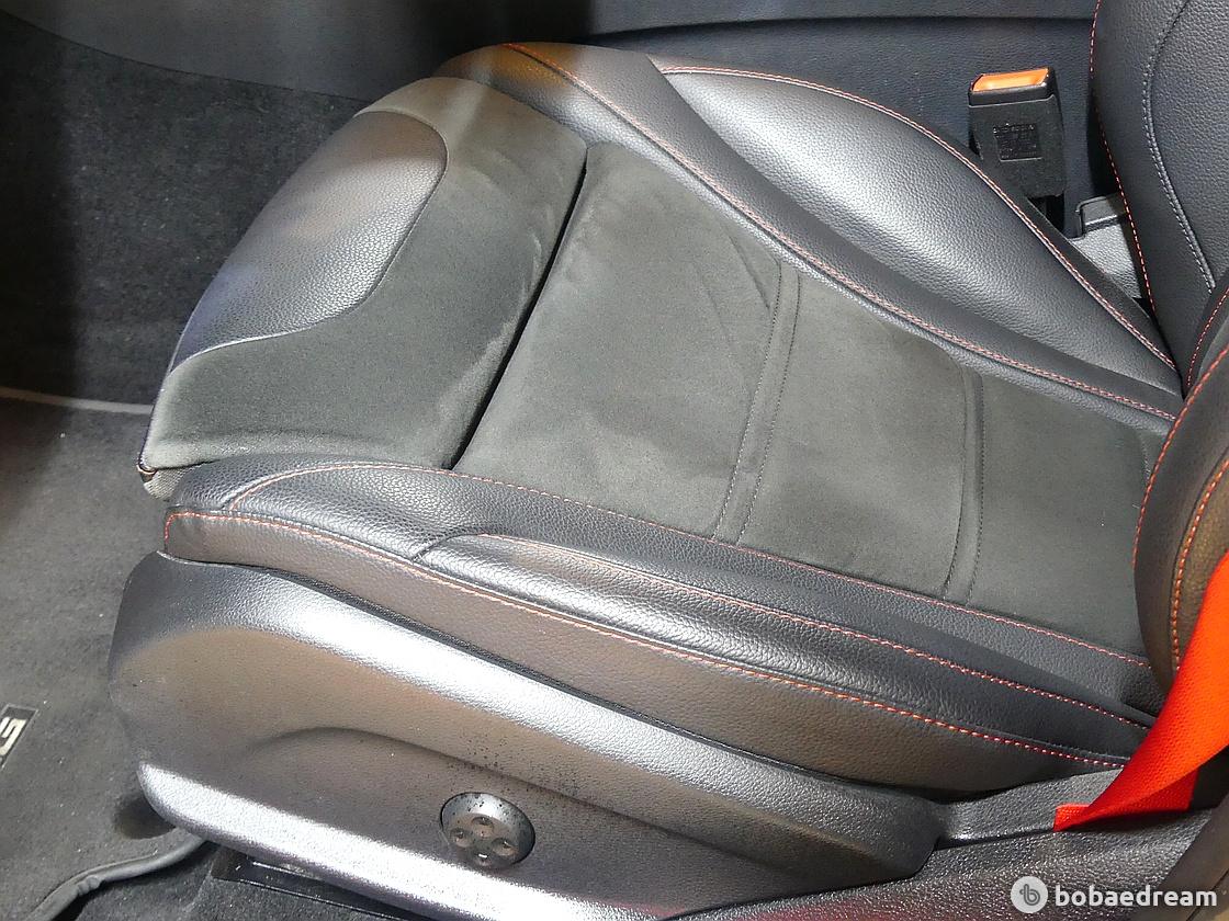 AMG의 감성을 더한 스티어링 휠, 그리고 스티어링 휠과 대시보드, 시트 등에 적용된 붉은색 스티치를