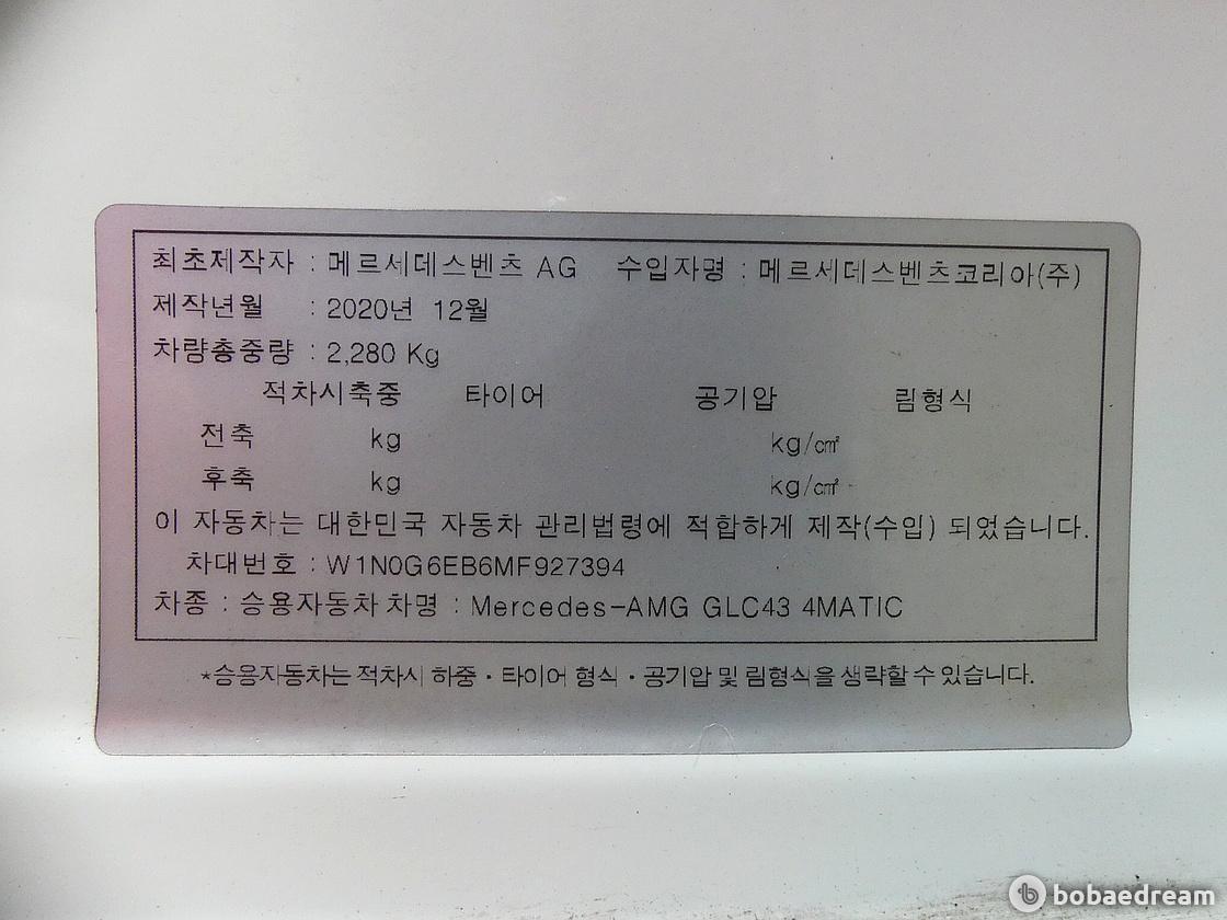 2021년 5월식 벤츠 GLC 43 AMG 4매틱 모델을 판매합니다.