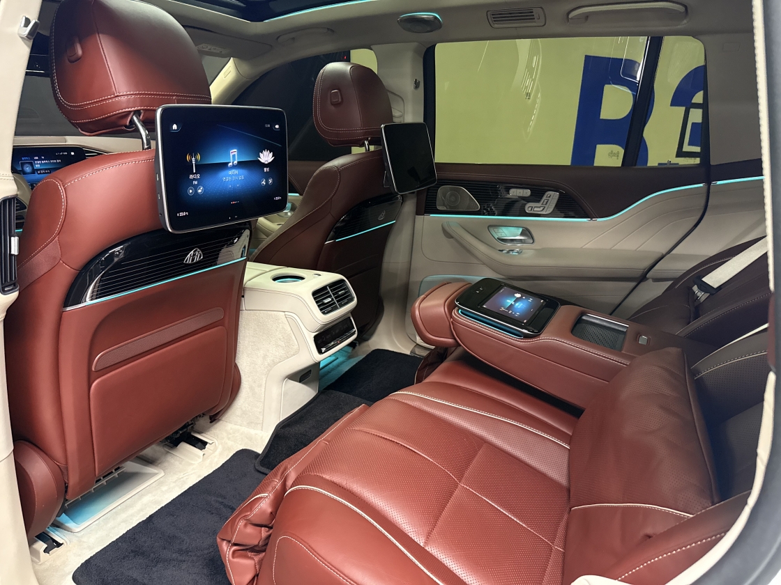센터 콘솔의 기본 MBUX 후방 태블릿(MBUX Rear Tablet)이나 뒷좌석 사이의 팔걸이를 통해 뒷좌석에서도