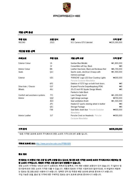 신형 911 GTS 라인업은 쿠페와 카브리올레, 사륜구동 쿠페, 카브리올레, 타르가 등 총 5종으로 구성됐다. 특히