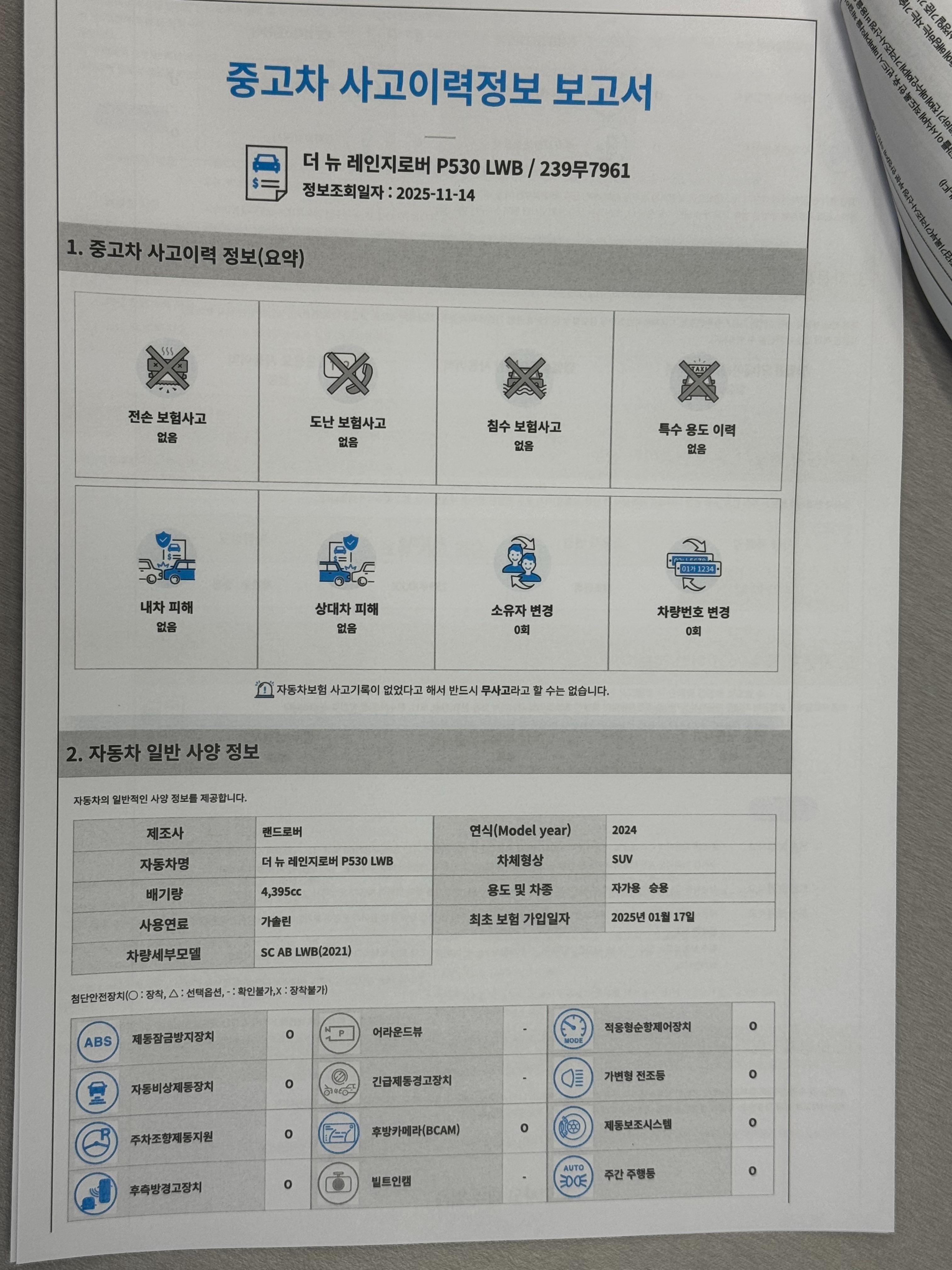 ▶사고이력정보 보고서