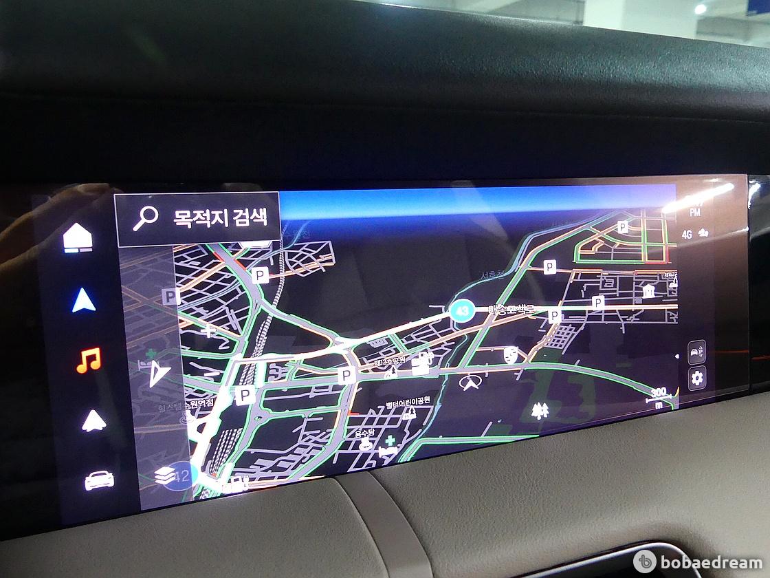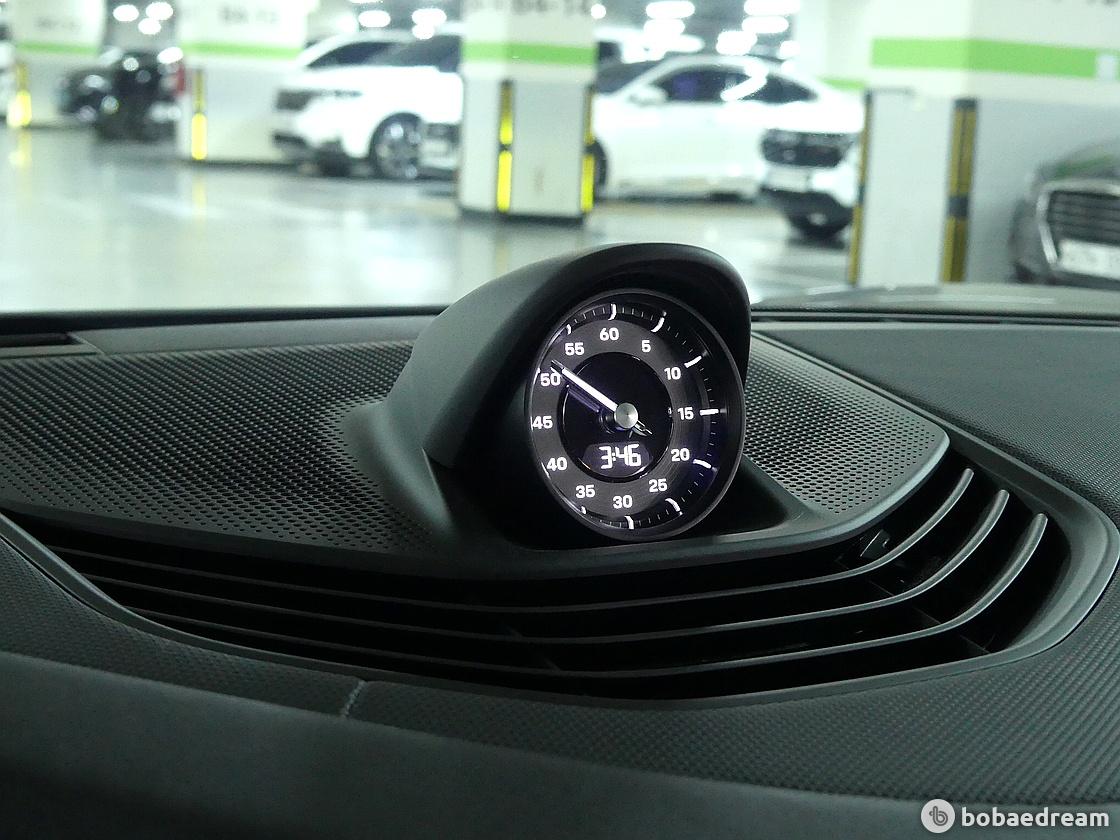 대시보드의 가장 높은 지점에 위치한 곡선형 계기판이 특징이다. 중앙의 10.9인치 인포테인먼트 디스