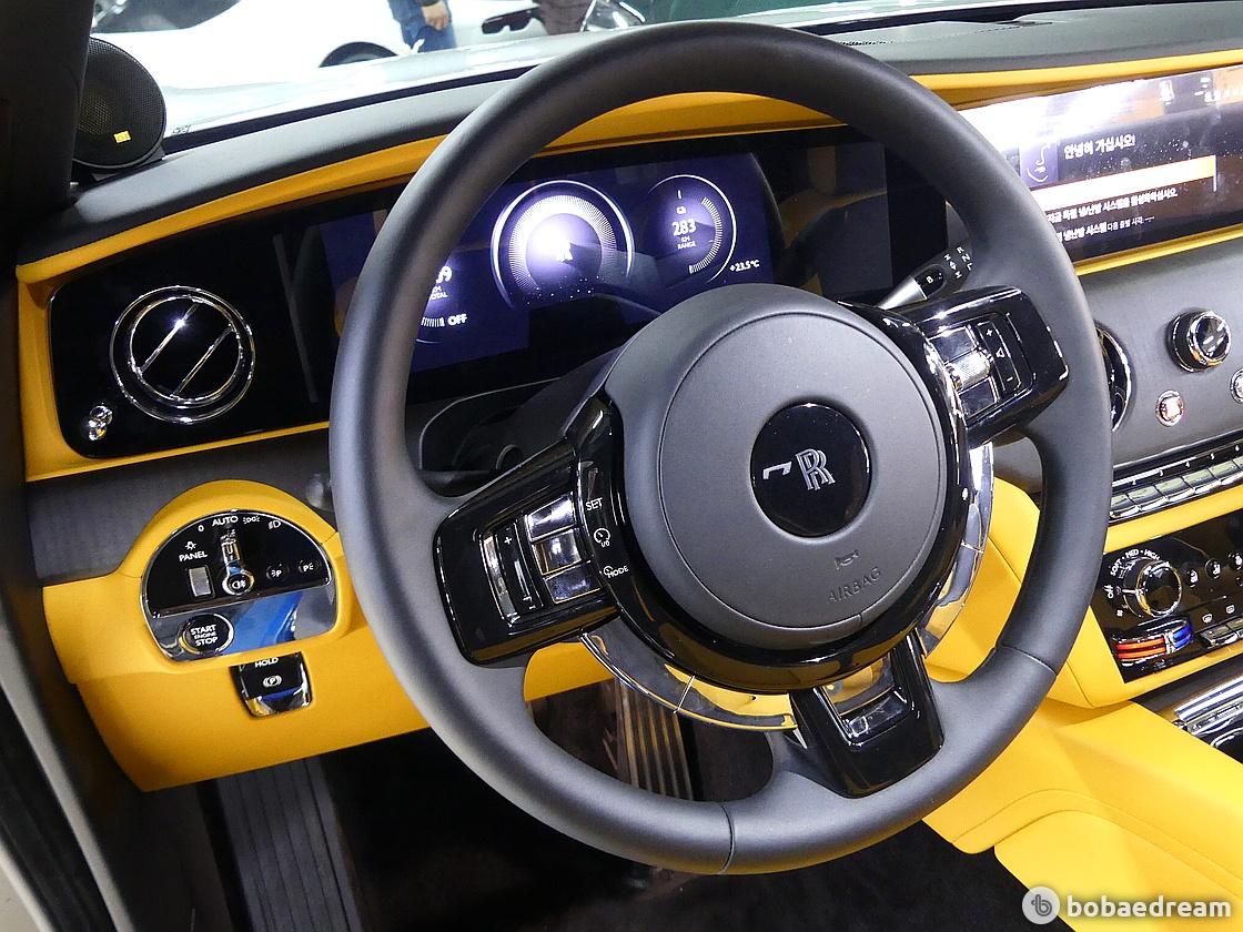전면부 공기 흐름을 위해 판테온 그릴을 보다 완만한 각도로 설계했다. 롤스로이스를 상징하는 '환희의 여신상