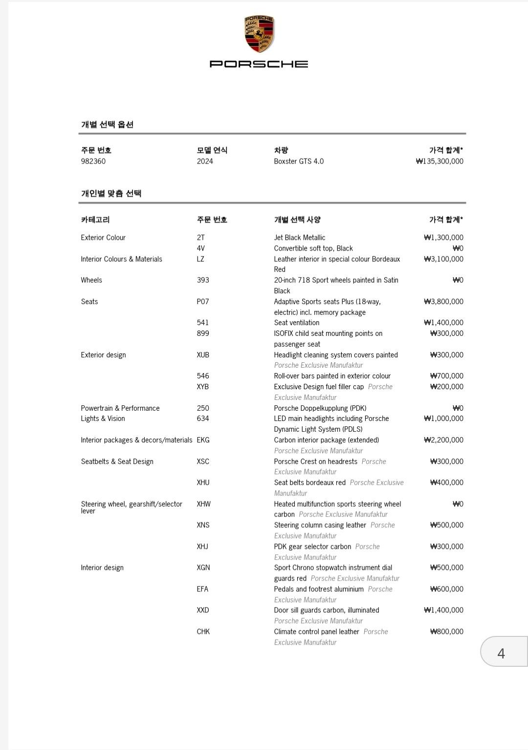 2024년형 (2023년 12월 등록) 포르쉐 718 박스터 4.0 GTS 모델을 판매합니다.