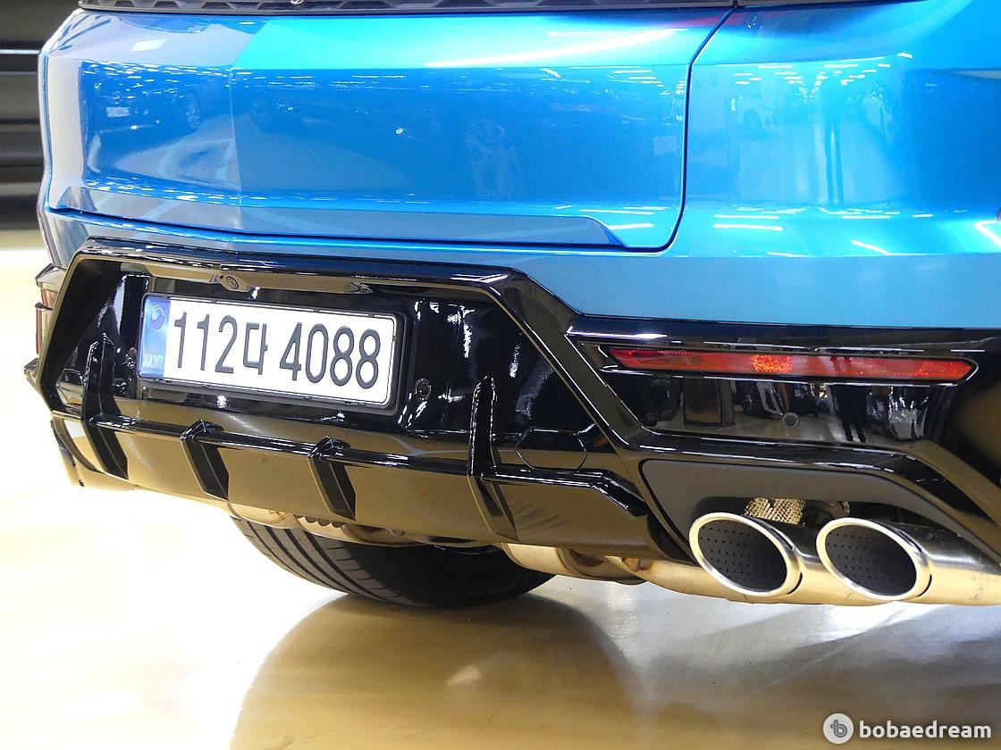리어 디퓨저와 스포일러는 고속 주행 시 안전성을 높여 우르스 S에 비해 리어 다운 포스를 약 35% 증가시킵니다.