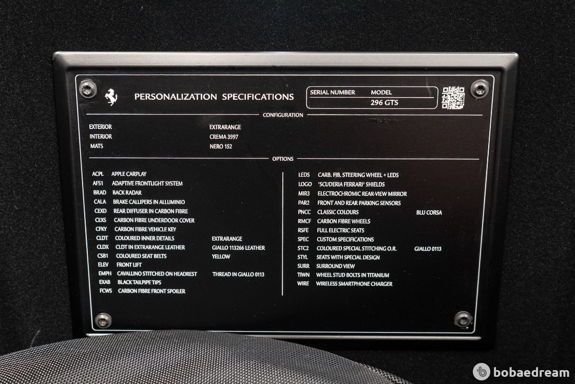 윙 프로파일과 플라잉 버트레스는 296 GTB와 동일한 공기역학 및 열 효율성을 보장한다. 296 GTS 토너 커버