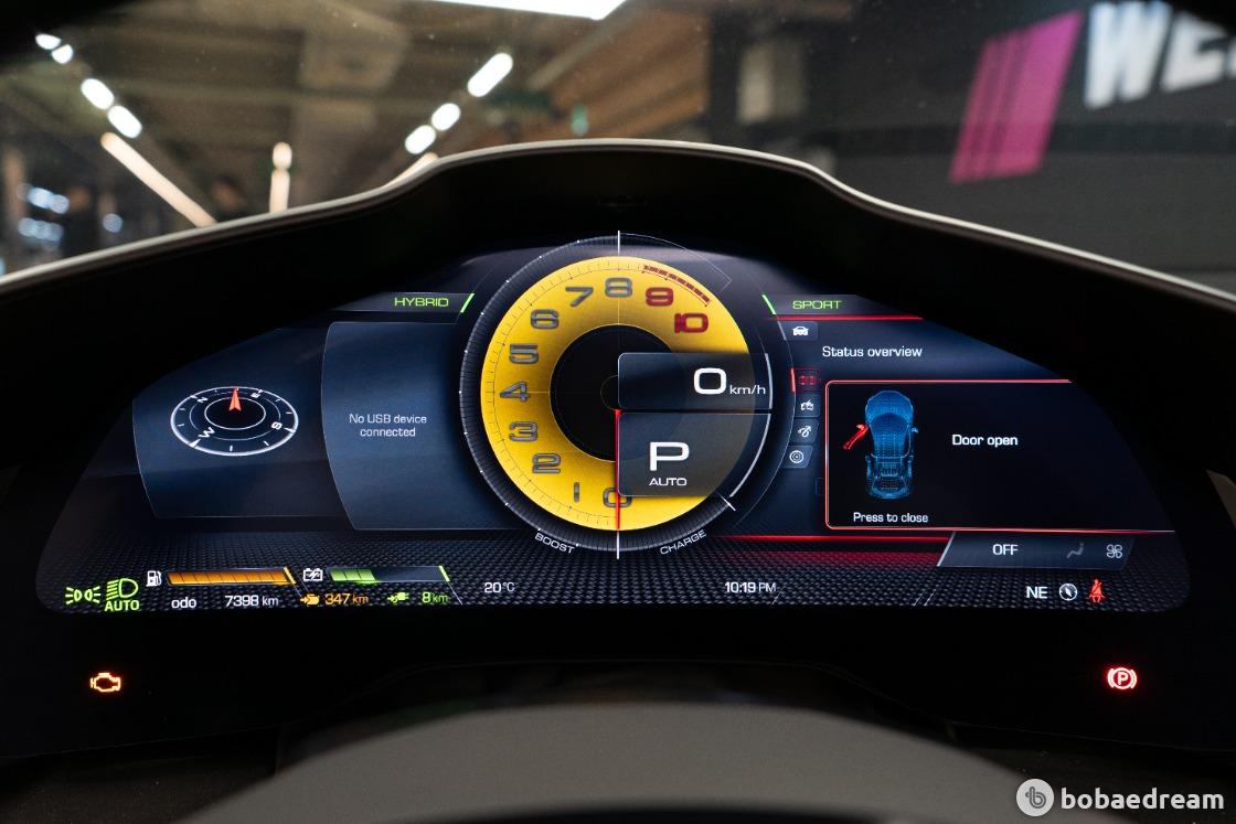 전기 모터와 결합해 830마력이라는 동급 최고 수준의 퍼포먼스를 발휘한다. 시속100km 까지는 2.9초, 200km