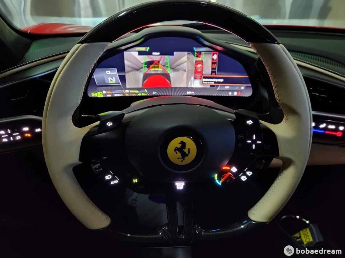 실내 인테리어는 SF90 스트라달레를 통해 선보인 풀 디지털 인터페이스를 토대로 디자인됐다. 인테리어