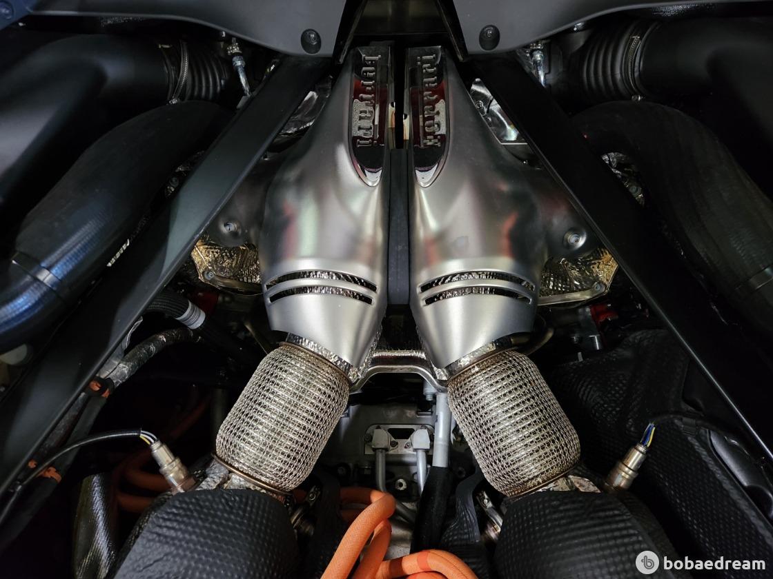 전기모터와 배터리를 더해 167마력(122㎾)의 추가 출력을 내 합산 830마력을 내뿜는다.