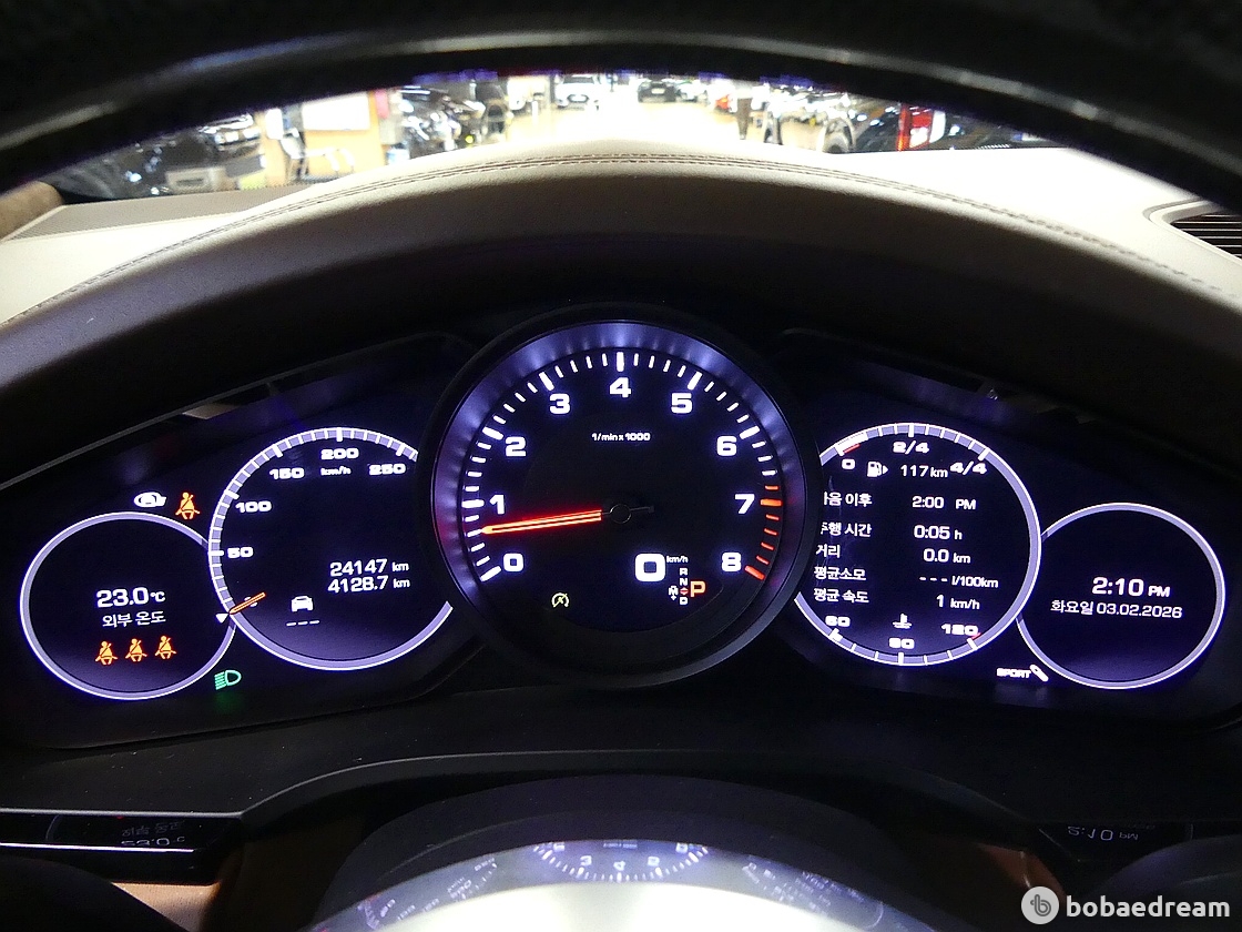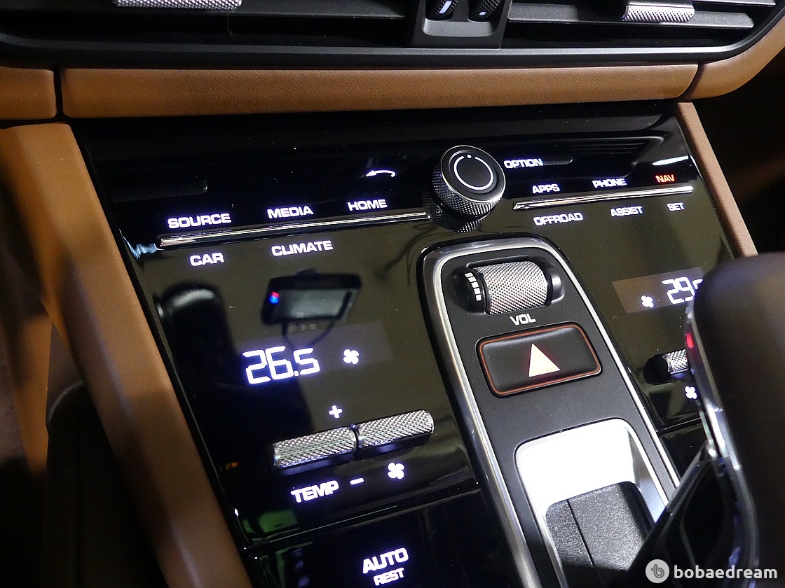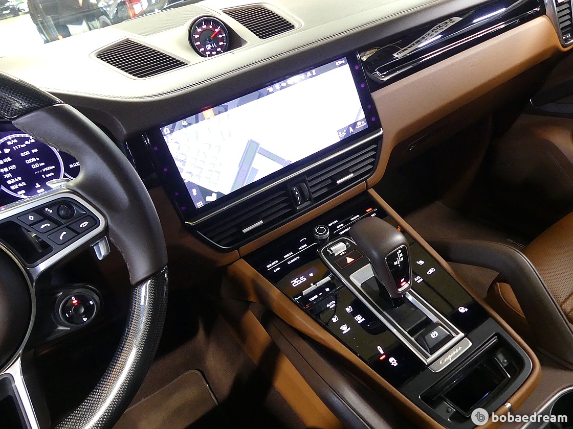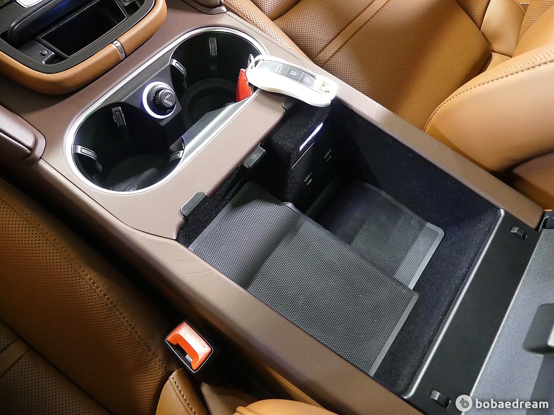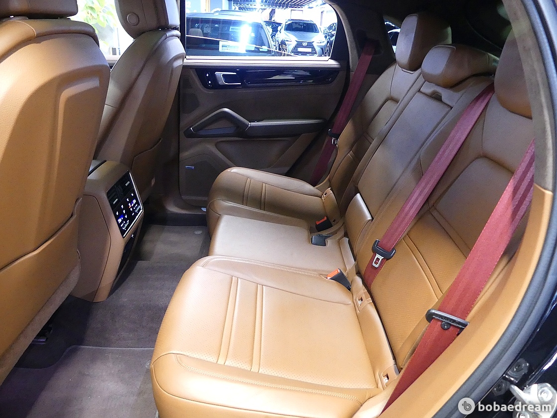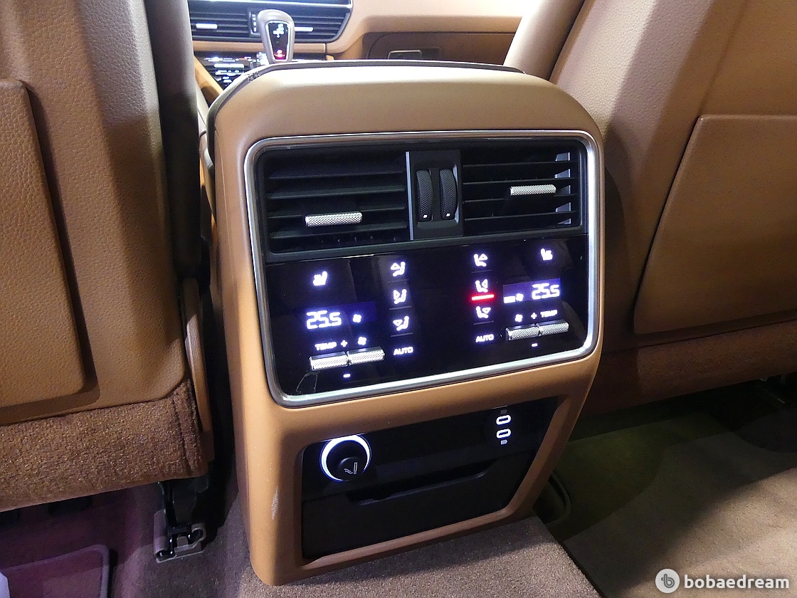 뒷좌석은 2개의 개별 시트로 사용 가능하며 컴포트 시트도 고를 수 있다. 카이엔보다 30밀리미터 낮아졌지만