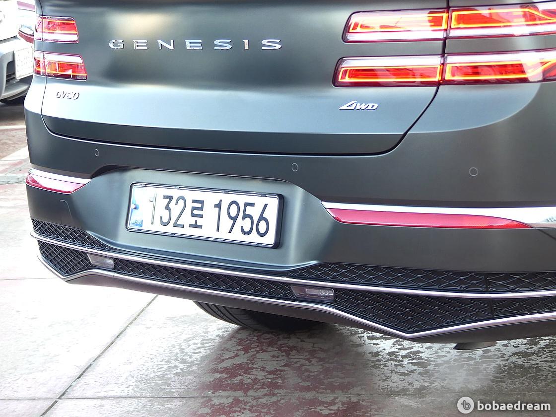 후면부는 히든 타입 머플러를 적용해 하단에 머플러를 노출하는 대신 제네시스의 크레스트 그릴의 디자인에서